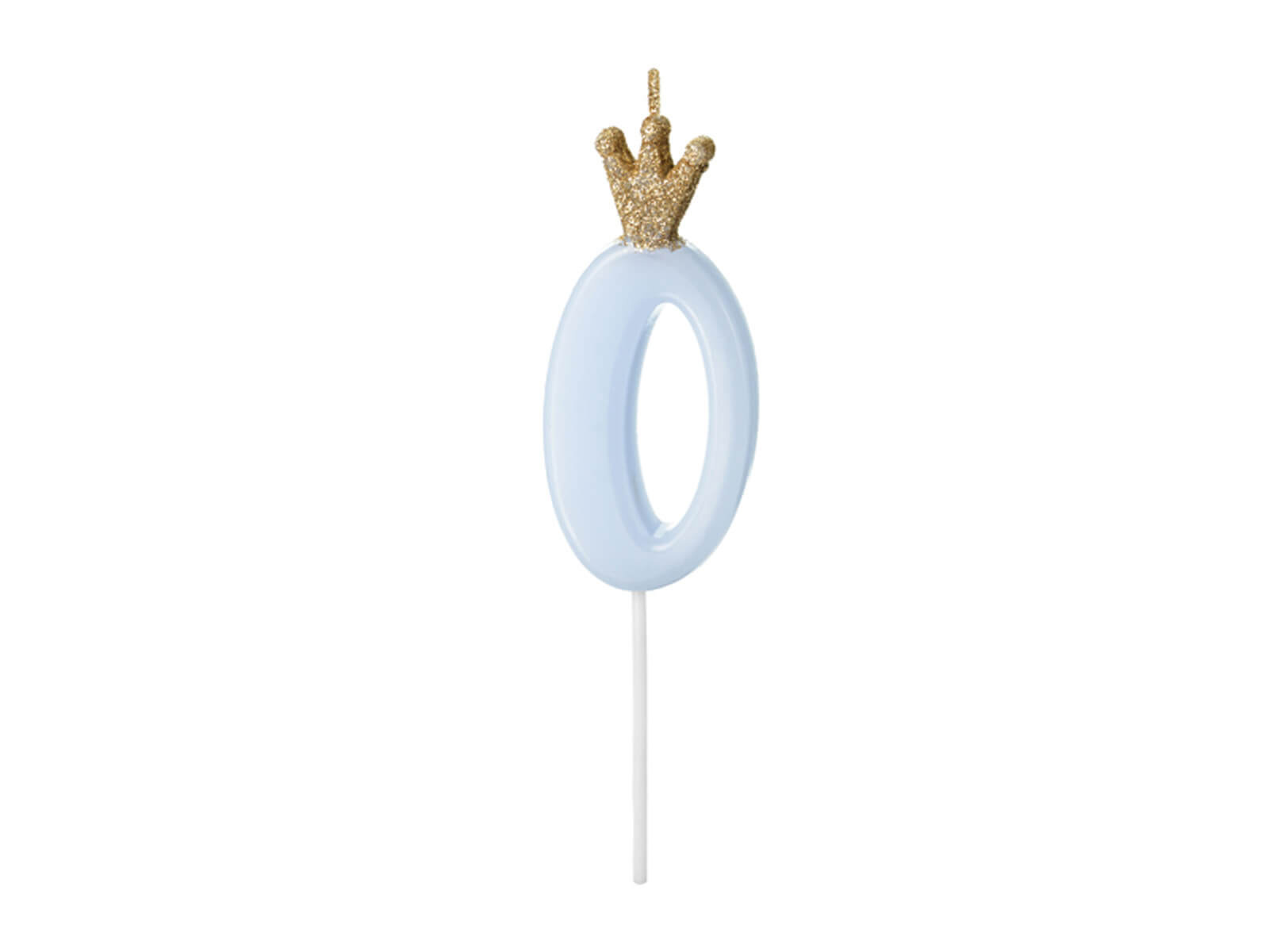 Lumânare numărul zero albastru cu coroană - 0 - 1 buc.