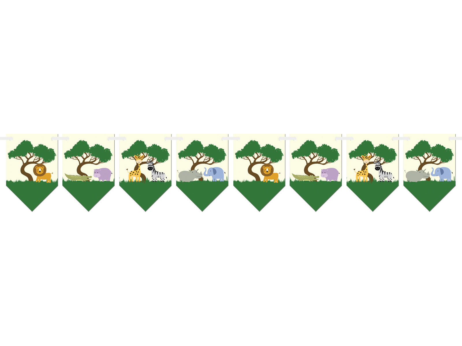 Bannerul cu steaguri Safari aduce un strop de aventură la orice eveniment. Copiii pot învăța despre diferite animale și se pot distra ghicind care este care. În plus, acest banner moale din hârtie decorează perfect orice perete din locuință sau din sala de clasă!