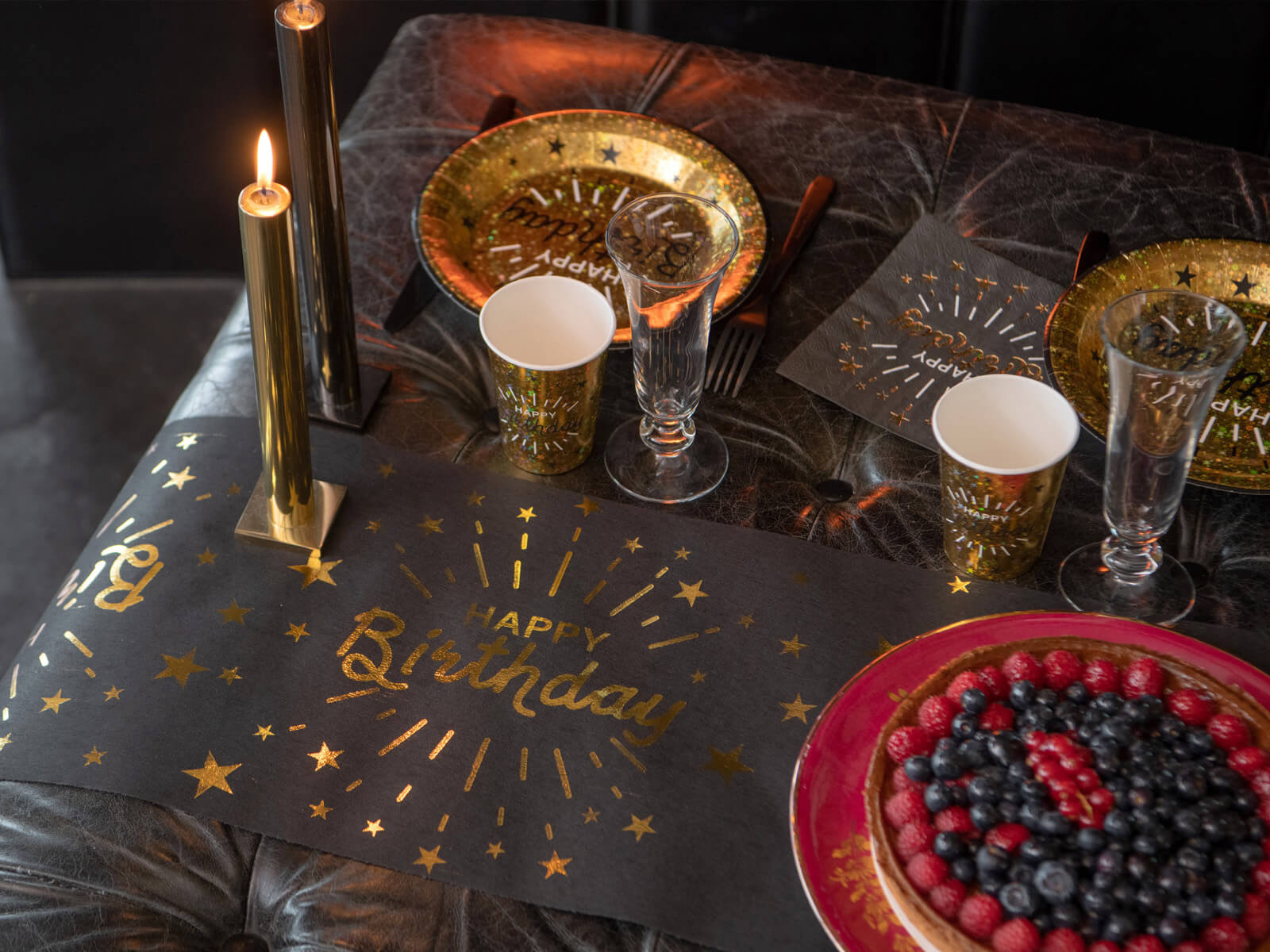 - Design exclusivist: culoarea neagră unică cu inscripția aurie Happy Birthday va face ca masa dvs. să arate foarte specială.