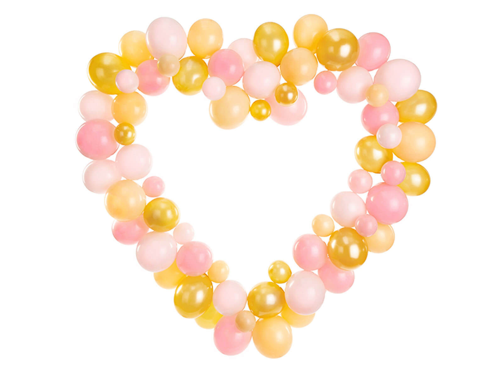 Ghirlandă cu baloane aurii roz cu cadru de inimă - 104 elemente