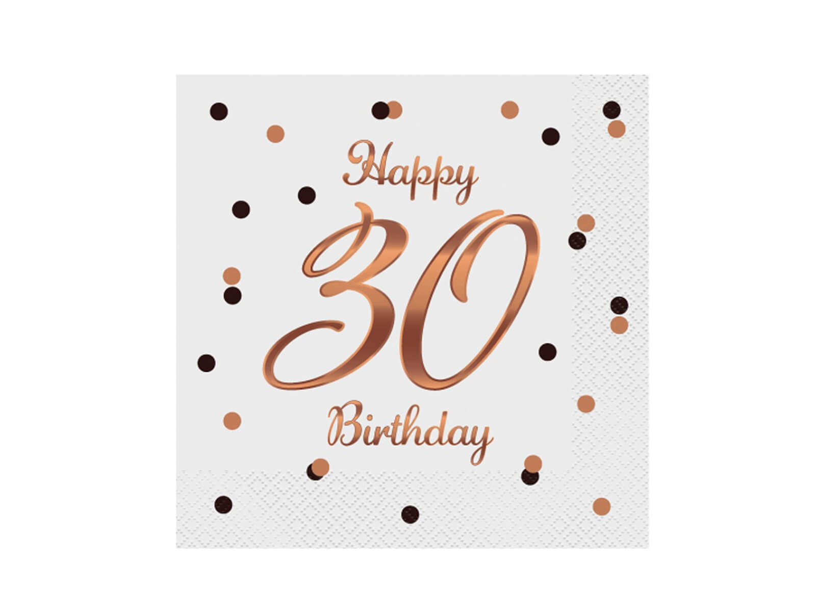 Șervețele pentru a treizecea aniversare alb - 33 cm - 20 buc.
