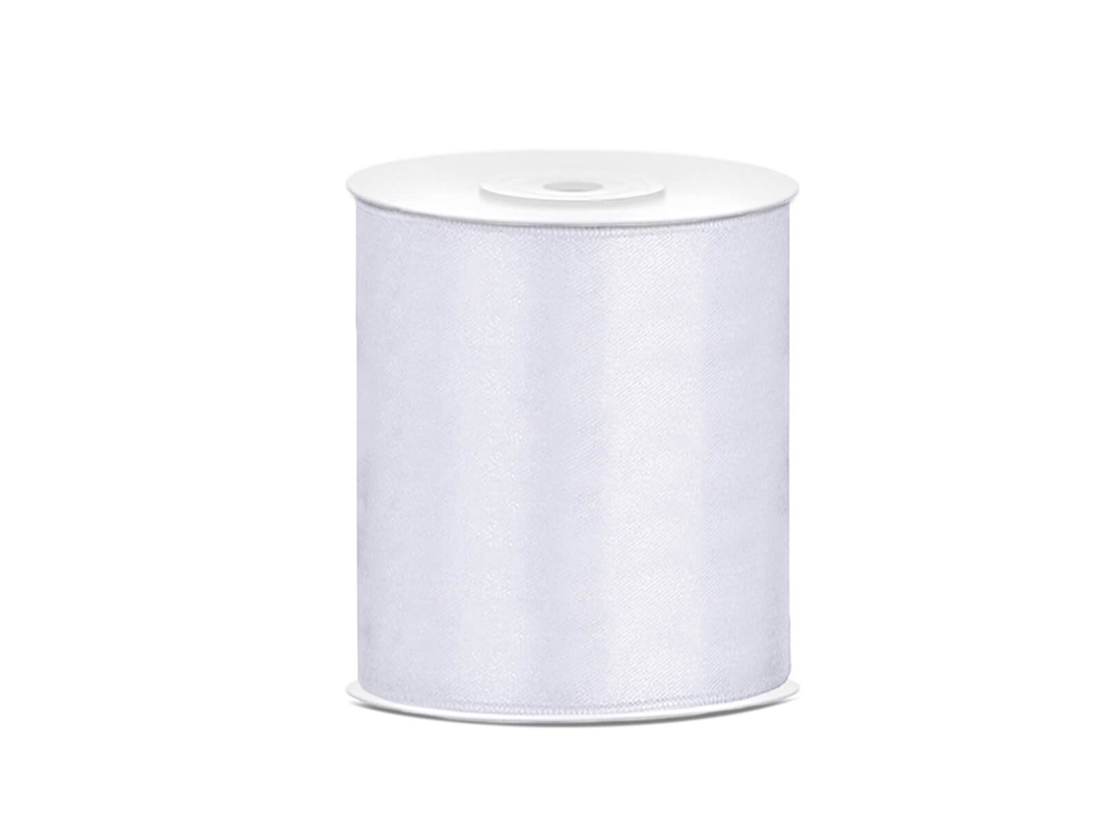 Panglică satinată, albă, 100mm/25m, 1 buc.