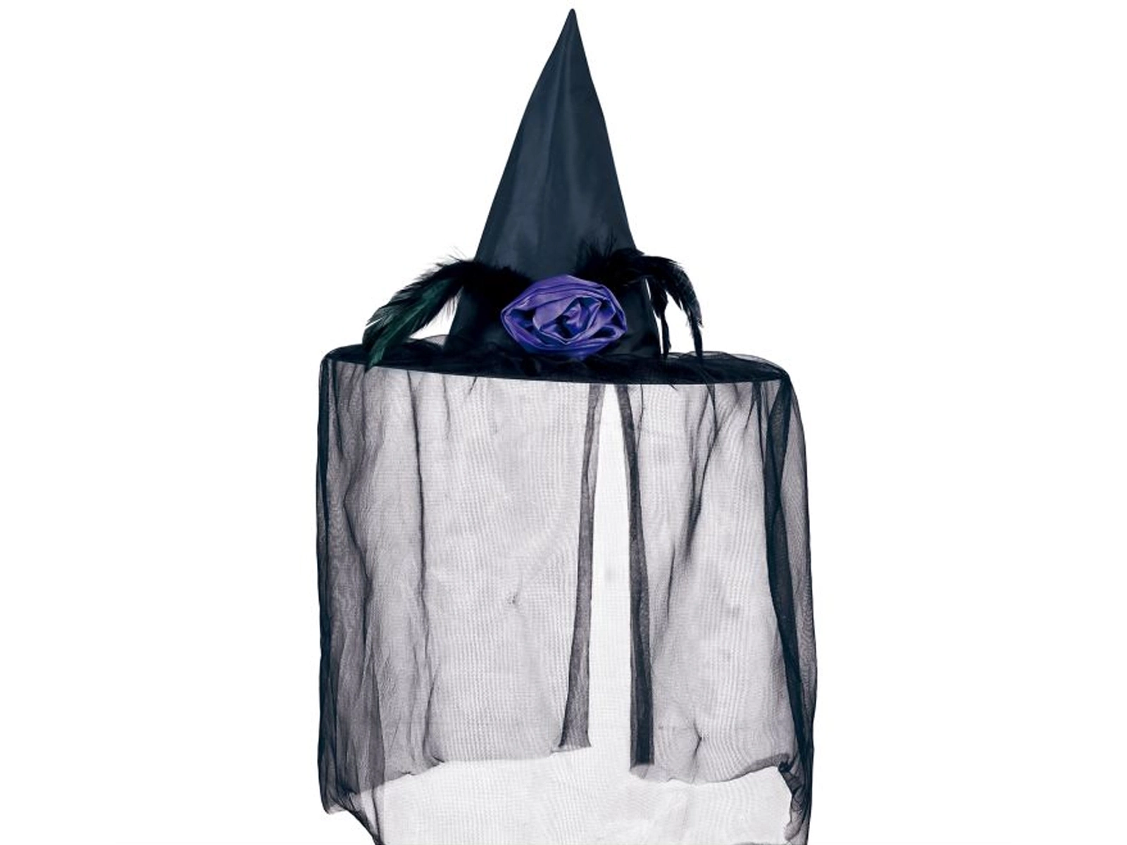 Pălărie de vrăjitoare neagră cu voal pentru Halloween - 1 buc.