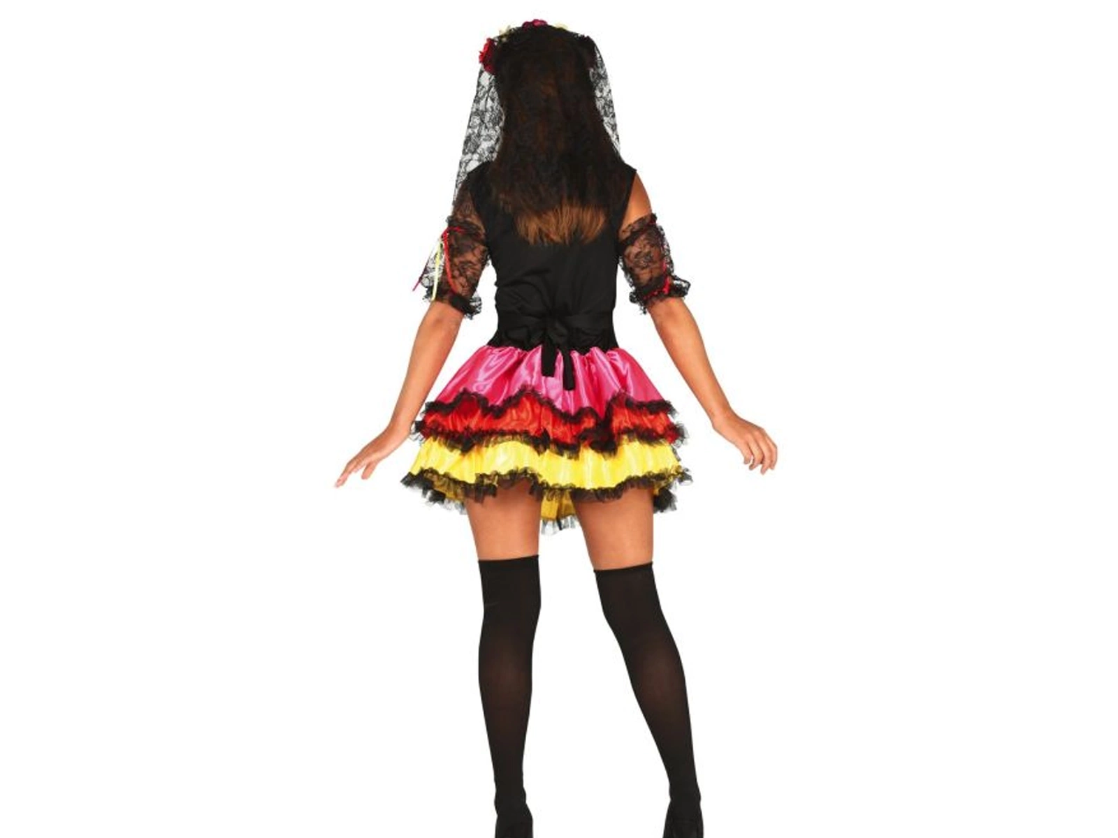Mărime: M (38-40) ideal pentru multe siluete. Setul include o frumoasă rochie decorate cu motive distinctive de cranii mexicane care adaugă o notă autentică costumului. Rochia este confortabilă și fabricată din materiale de înaltă calitate, garantând o purtare confortabilă pe tot parcursul nopții.