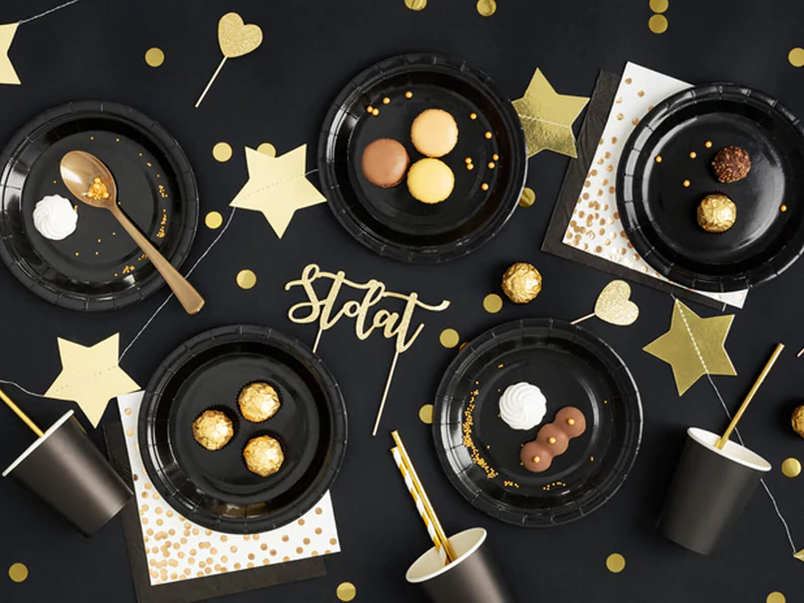 1. Pahare de hârtie în negru elegant - perfecte pentru zile de naștere sau Halloween.