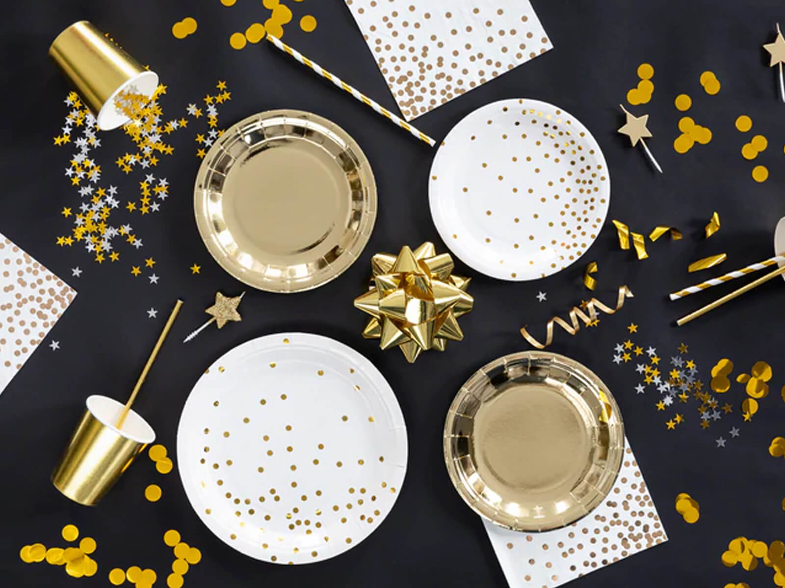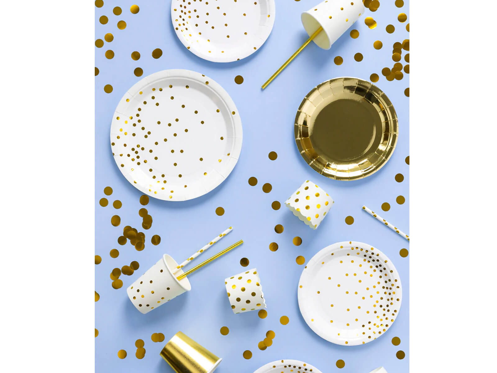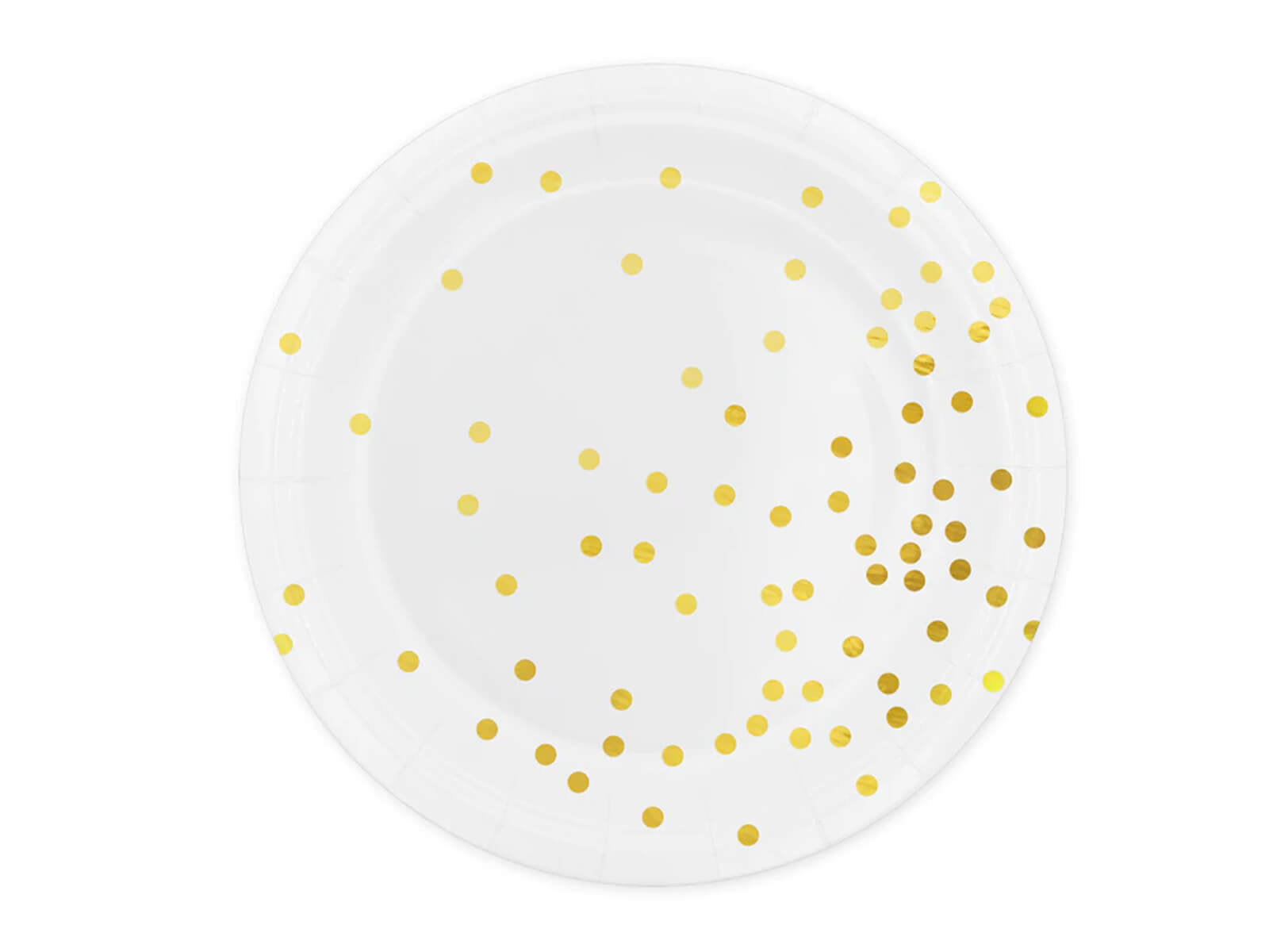 Farfurii de hârtie albe cu mazăre aurie - 23 cm - 6 buc.