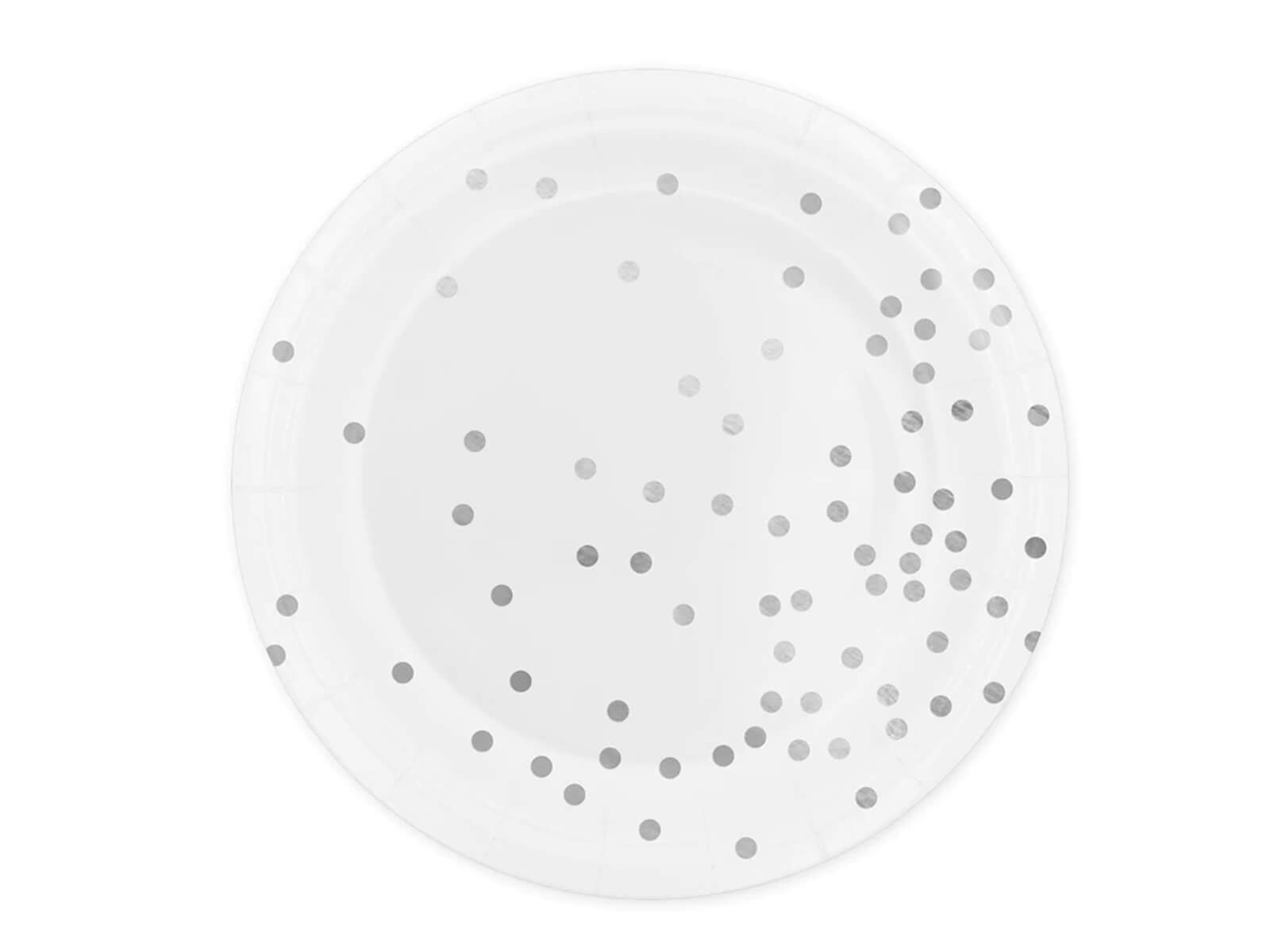 Farfurii de hârtie albe cu buline argintii - 23 cm - 6 buc.