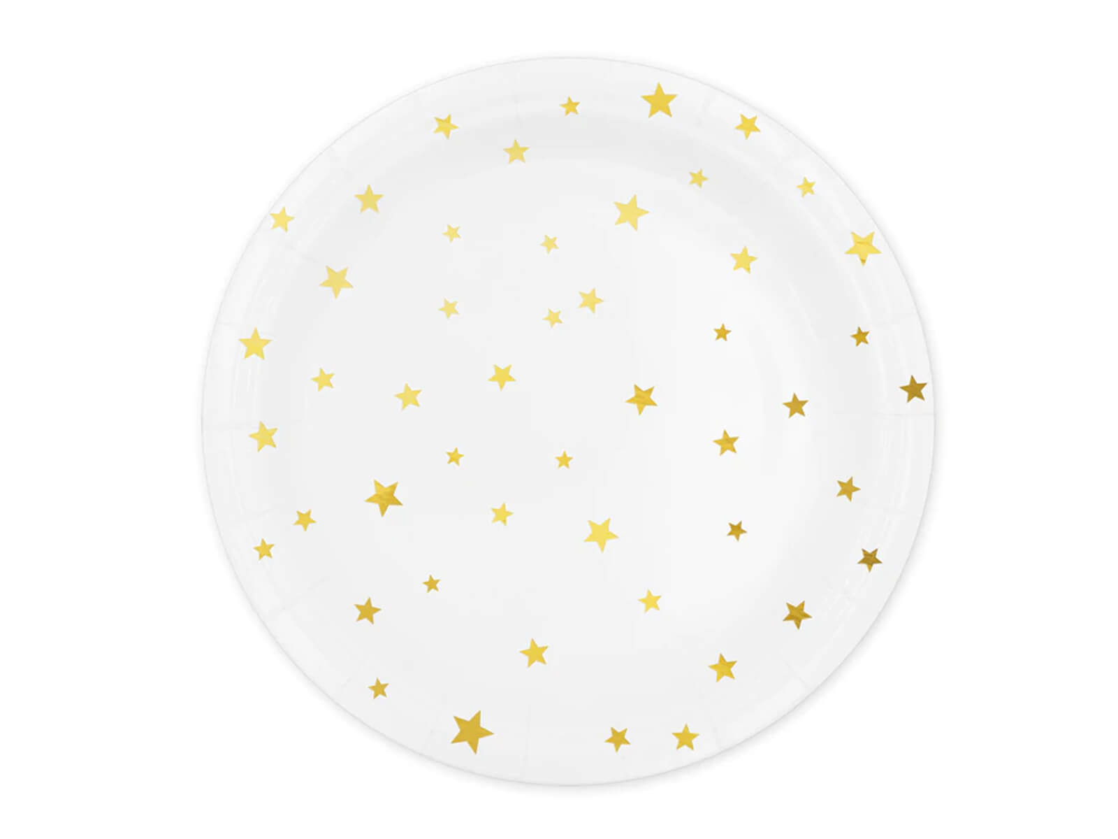 Farfurii de hârtie albe cu stele aurii - 23 cm - 6 buc.