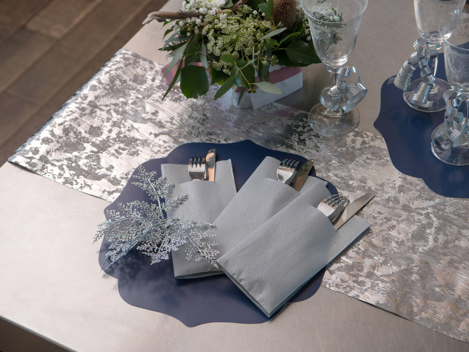 Decorațiune de masă metalică - argintie - 28 cm x 2,5 m - 1 buc.