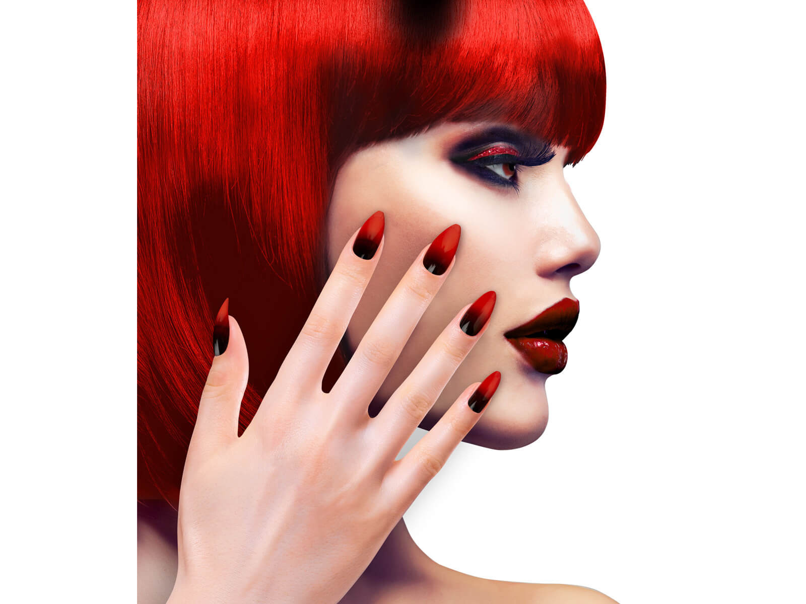 Transformați-vă mâinile într-o operă de artă cu acest set de unghii false autoadezive într-un stil ombre izbitor, amestecând negru intens cu roșu intens. Accesoriu perfect pentru orice costum de Halloween, aceste unghii adaugă caracter oricărui look. Ușor de aplicat, acestea garantează un efect uimitor fără o vizită la salonul de înfrumusețare.