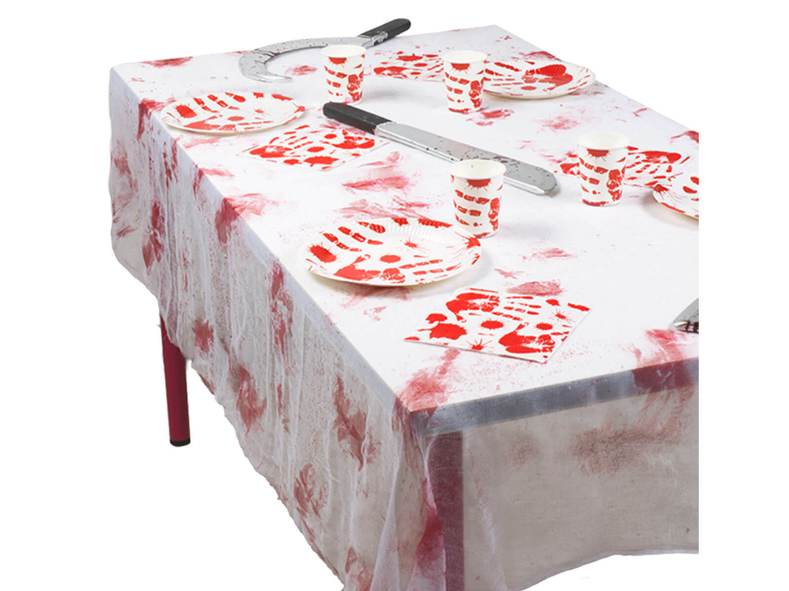 Această față de masă însângerată este decorul perfect pentru Halloween sau alte petreceri tematice care necesită un pic de atmosferă întunecată și misterioasă. Fața de masă este fabricată din material de înaltă calitate care o face durabilă și ușor de curățat.