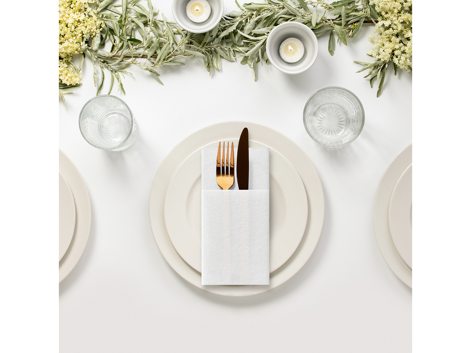 Buzunare pentru tacâmuri Airlaid alb - 40 cm - 25 buc.