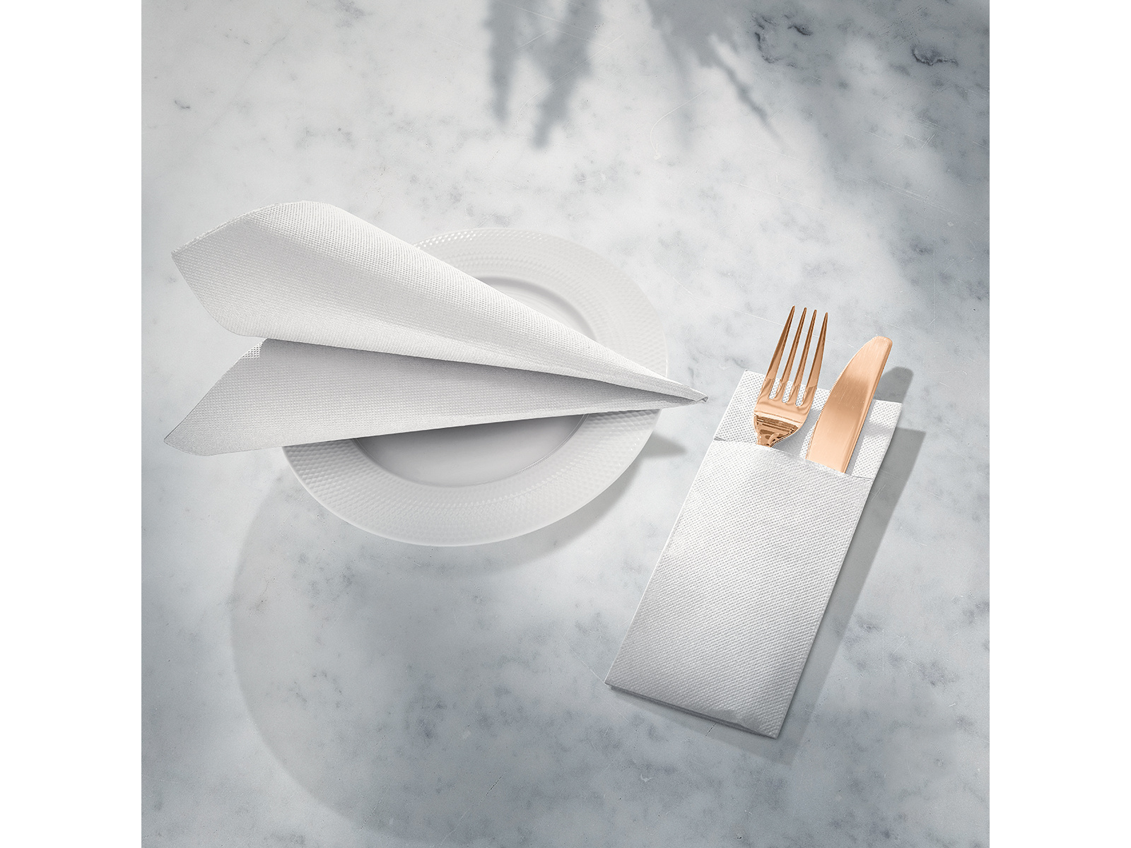 Airlaid este materia primă din care sunt produse șervețelele premium. Ele imită perfect țesătura, sunt durabile și absorbante.