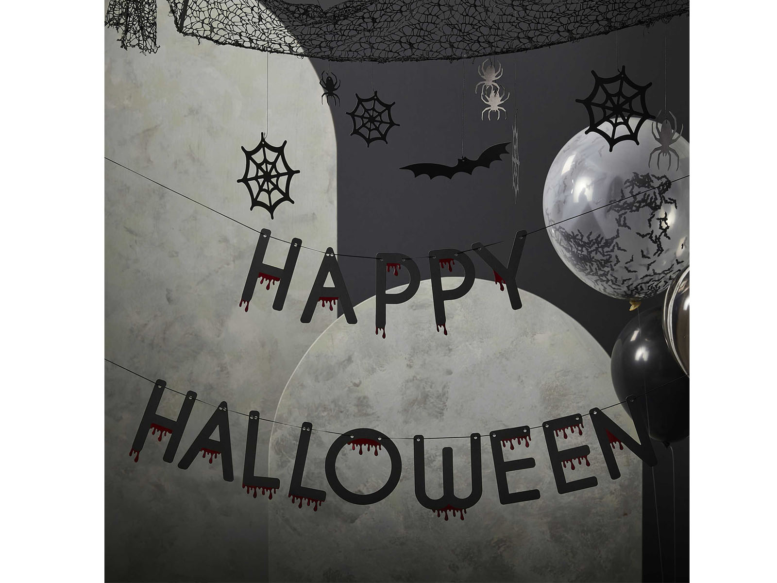 Transformați-vă camera într-un tărâm întunecat al groazei cu bannerul nostru "Halloween fericit sângeros". Accesoriul perfect pentru o petrecere de Halloween care va crea atmosfera potrivită pentru orice interior. Fabricat din hârtie de înaltă calitate, bannerul este decorat cu picături de sânge izbitoare, făcându-l nu doar o decorare, ci un element atmosferic real.