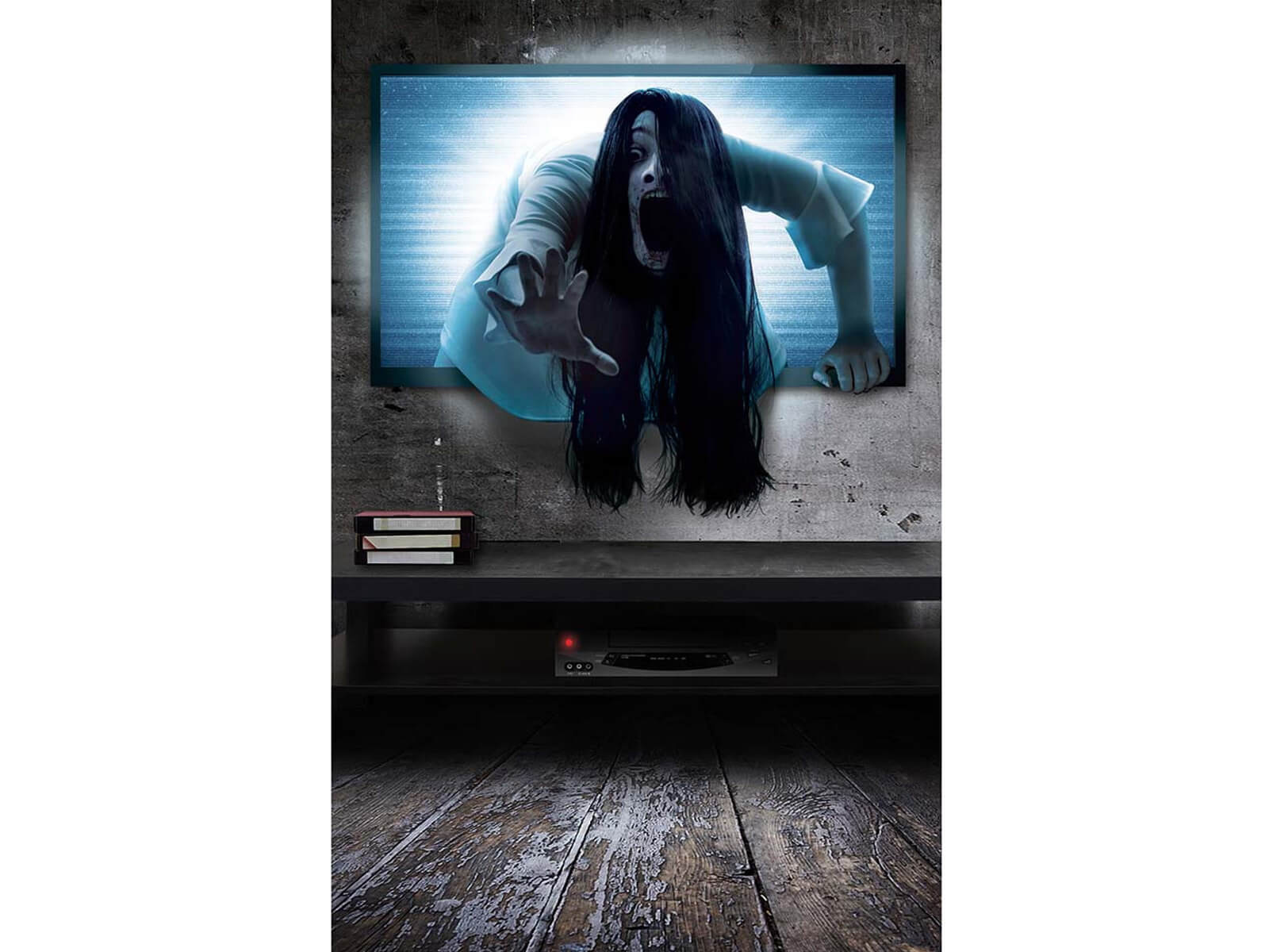 Imaginați-vă scena: fantoma unei fete posedate apare din televizor, iar expresia terifiantă de pe fața ei vă face să vă luați picioarele de talie. Acum puteți aduce această scenă în casa dvs. cu decorul nostru! Produsul este fabricat din folie autoadezivă, ceea ce îl face ușor de instalat, permițând în același timp îndepărtarea ușoară după eveniment.