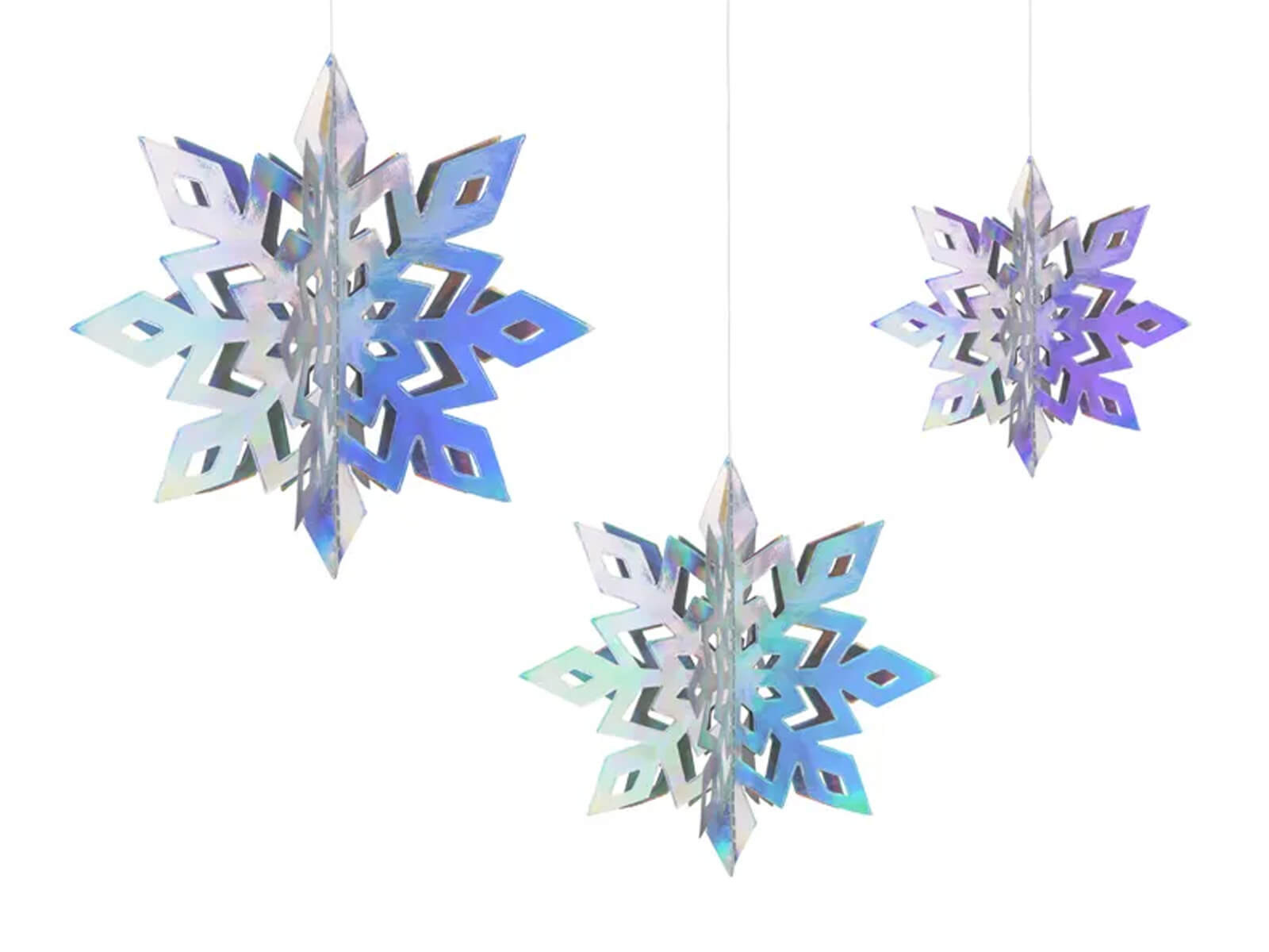 Evocați atmosfera magică a Crăciunului cu pandantive opralizante în formă de fulgi de zăpadă. Ideal pentru oricine dorește să adauge puțină strălucire decorațiunilor sale de Crăciun. Fiecare set conține 6 bucăți de decorațiuni din hârtie de diferite dimensiuni: 15 cm, 20 cm și 25 cm, astfel încât să puteți crea un frumos peisaj de iarnă pe bradul dvs. sau oriunde în casa dvs.