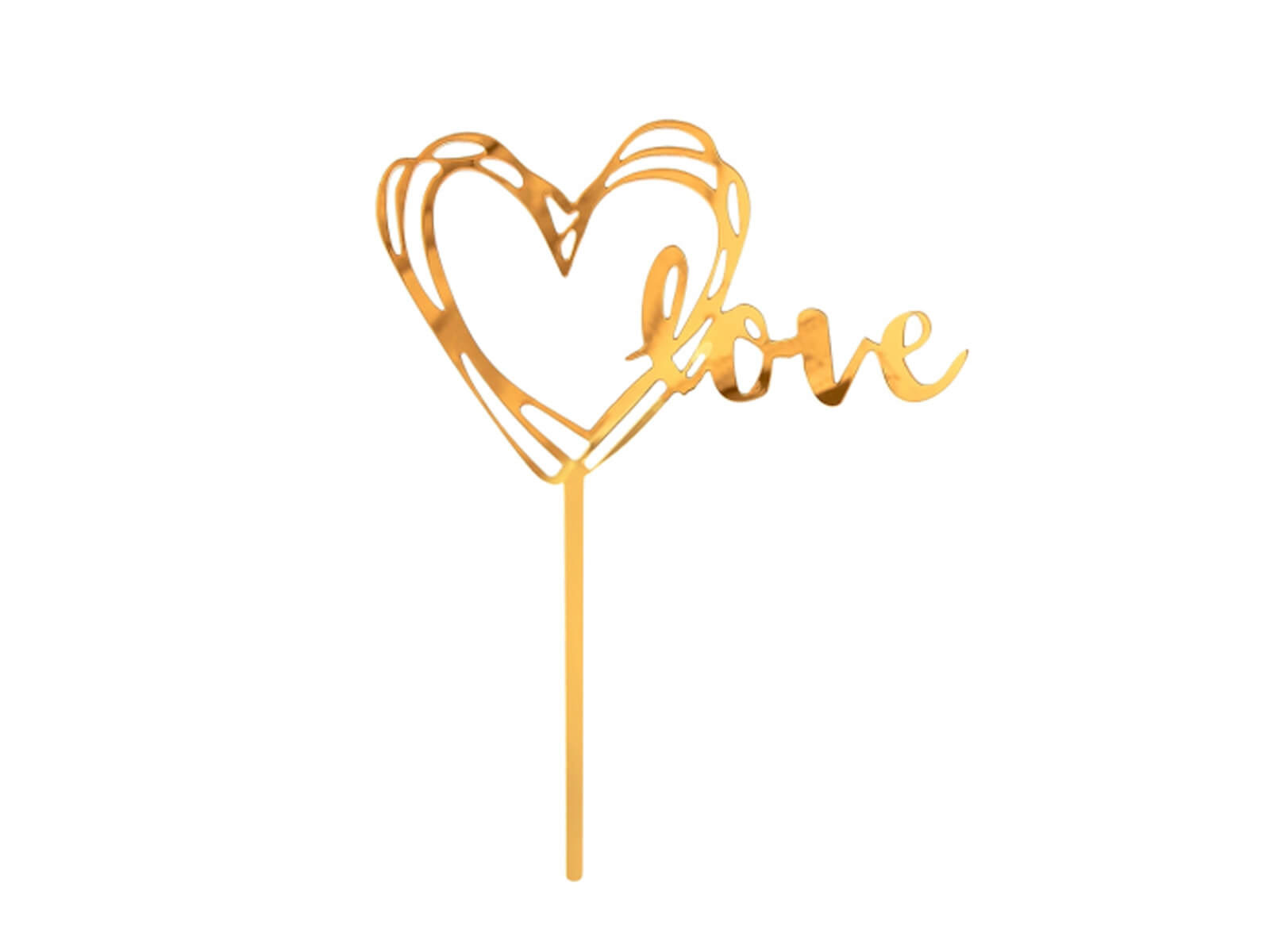 Topper pentru tort din plexiglas Love gold - 1 buc.
