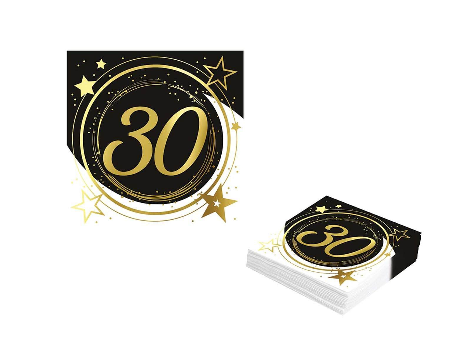 Șervețele pentru a treizecea aniversare negru - 33 cm - 12 buc.