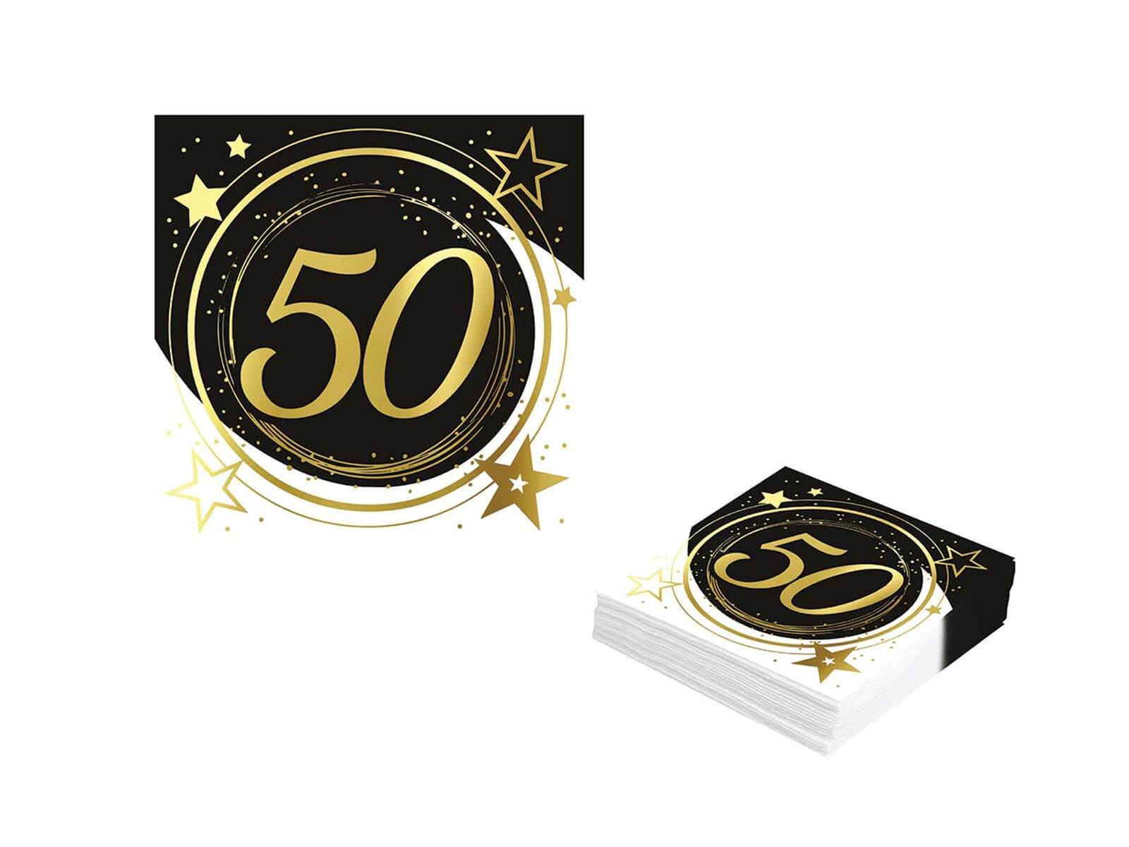 Șervețele pentru petrecerea celei de-a 50-a aniversări negru - 33 cm - 12 buc.