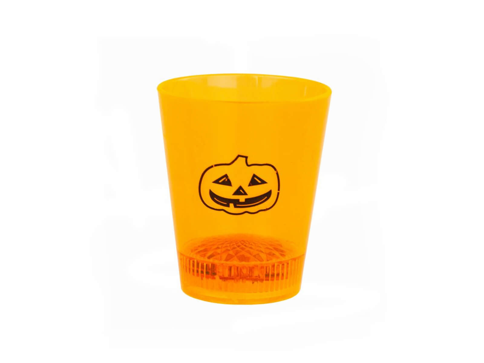 Surprindeți-vă oaspeții cu un accesoriu neobișnuit pentru petrecerea dvs. de Halloween! Prezentând un pahar de plastic, luminos sticlă portocalie, care vor adăuga magie la orice decor de masă. Inspirat de motivul Halloween, paharul este decorat cu modele de craniu sau dovleac - designul este trimis la întâmplare, făcând din fiecare pahar o surpriză unică.