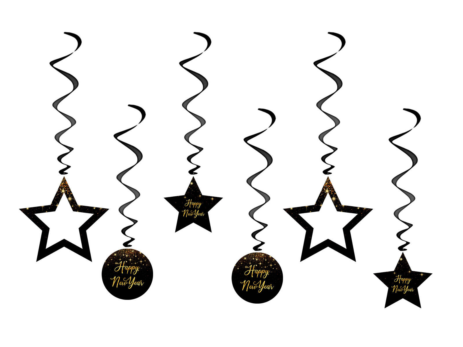 Decorațiuni strălucitoare cu pandantiv Happy New Year - 6 buc.