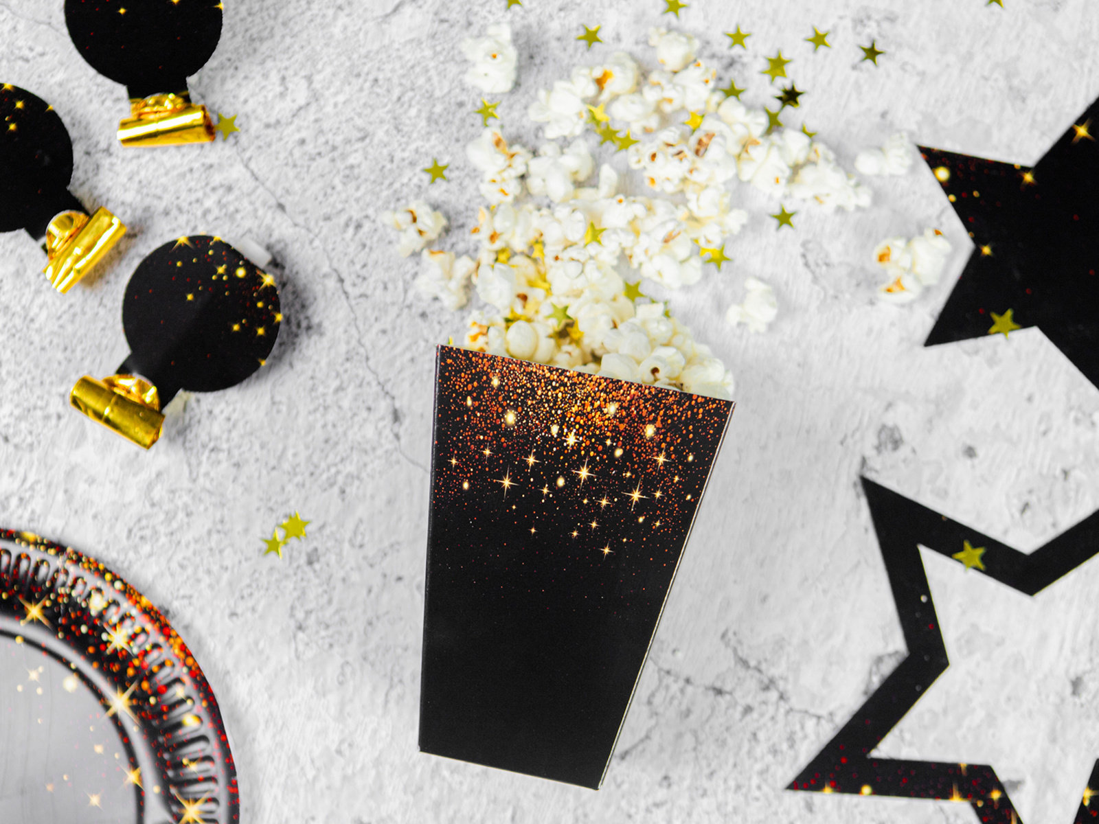 - Ambalare: veți găsi 6 cutii de popcorn Sparkling în set, permițându-vă să le utilizați și pentru petreceri mai mari.