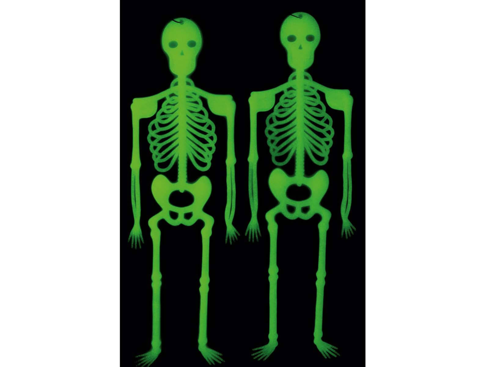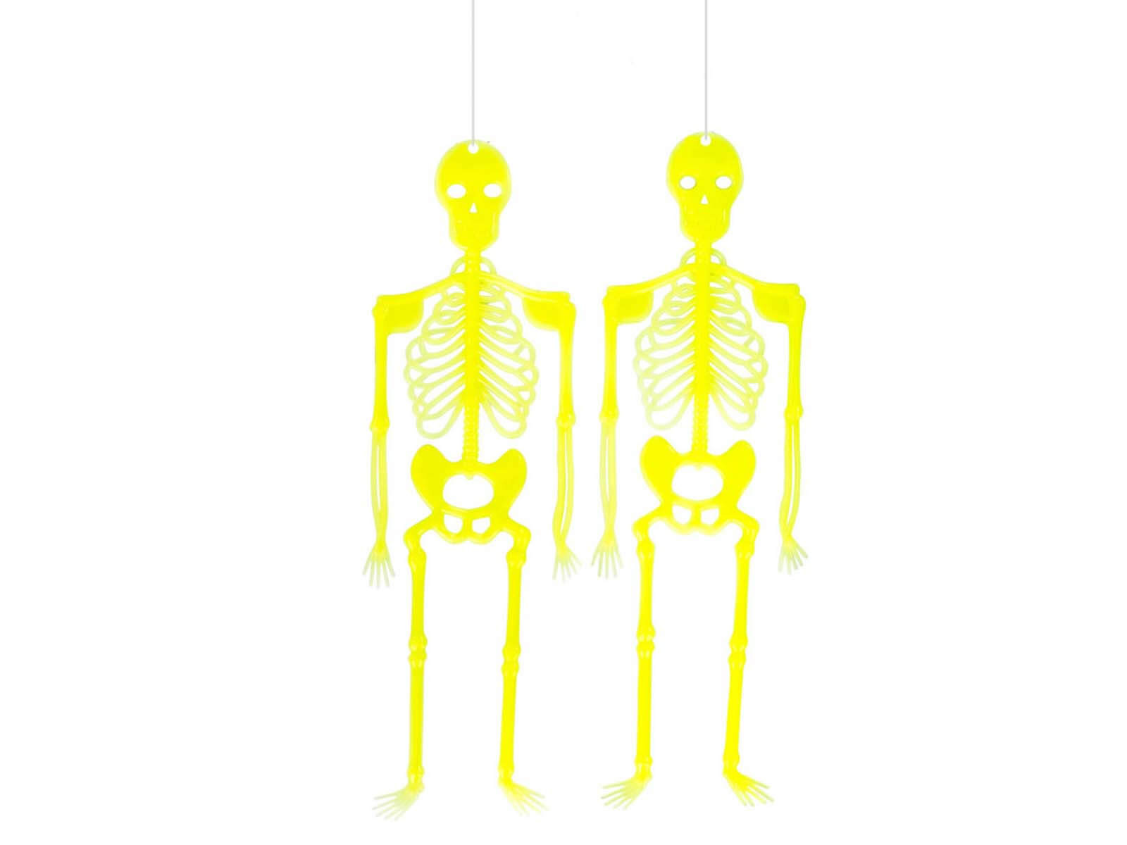 Dă viață petrecerii tale de Halloween cu scheletele noastre schelete care strălucesc în întuneric. Fiecare set conține două decorațiuni suspendate de 33 cm înălțime, ideale pentru decorarea atât a spațiilor interioare, cât și a celor exterioare ale casei dvs. Aceste schelete neobișnuite, realizate din materiale de înaltă calitate, nu sunt doar un accesoriu decorativ excelent, ci pot acționa și ca paznici înfricoșători pentru oaspeții nepoftiți.