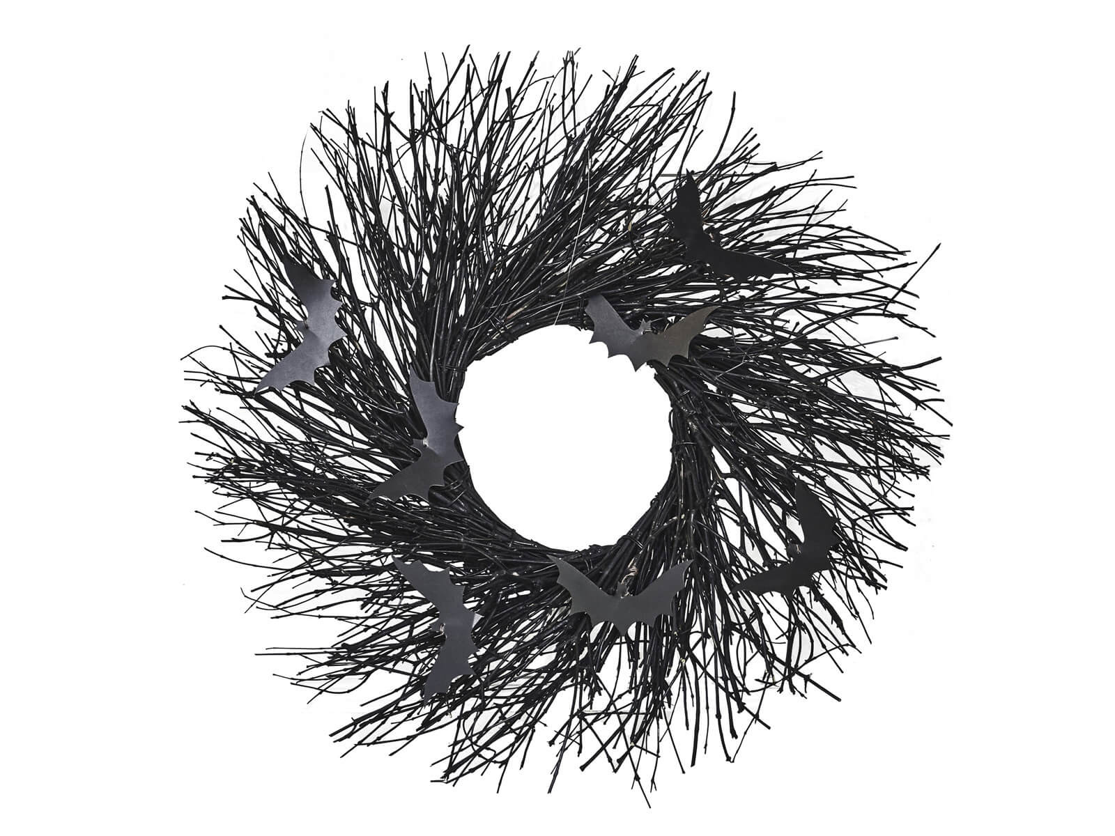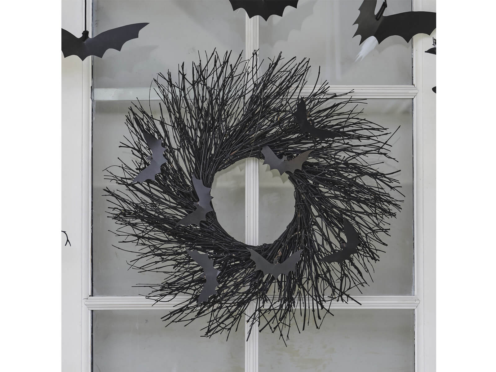 Descoperiți obiectul decorativ perfect pentru Halloween! Coronița noastră Coroană de Halloween din crenguțe, decorată cu lilieci de hârtie, este alegerea perfectă pentru această noapte specială. Coroana are un diametru de 45 cm, făcându-l un accesoriu vizibil și atractiv pentru orice spațiu, atât în interior, cât și în exterior.