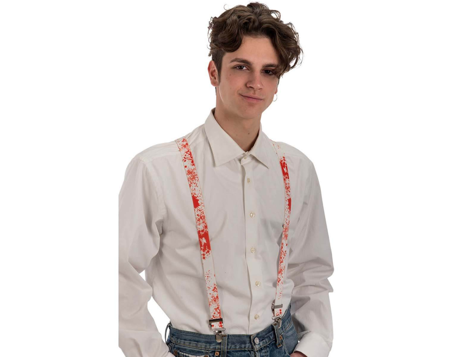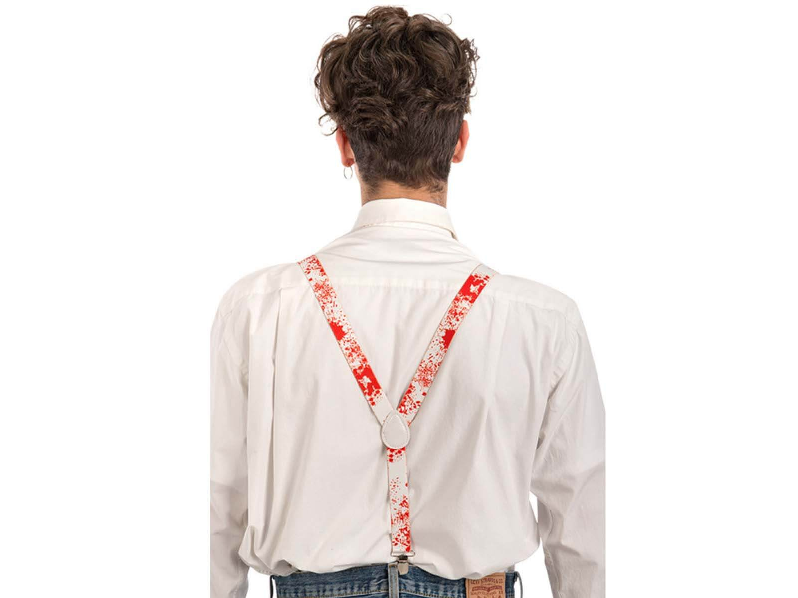 Un element esențial pentru oricine dorește să joace un personaj de film de groază! Bretele pătate de sânge este completarea perfectă pentru costumul tău întunecat de Halloween. Aceste bretele unice sunt fixate cu broaște funcționale și ușor de utilizat, asigurându-se că se vor ține bine la orice ținută, fie că este vorba de o cămașă sau un tricou.