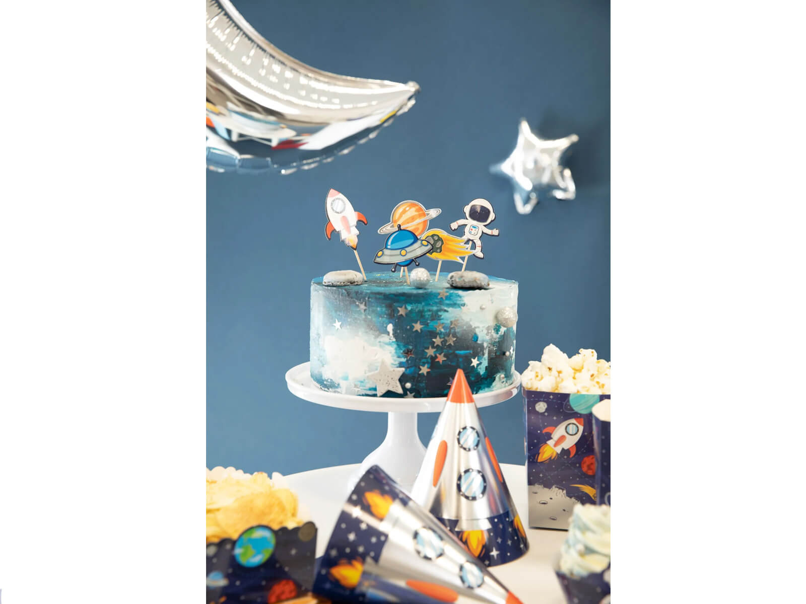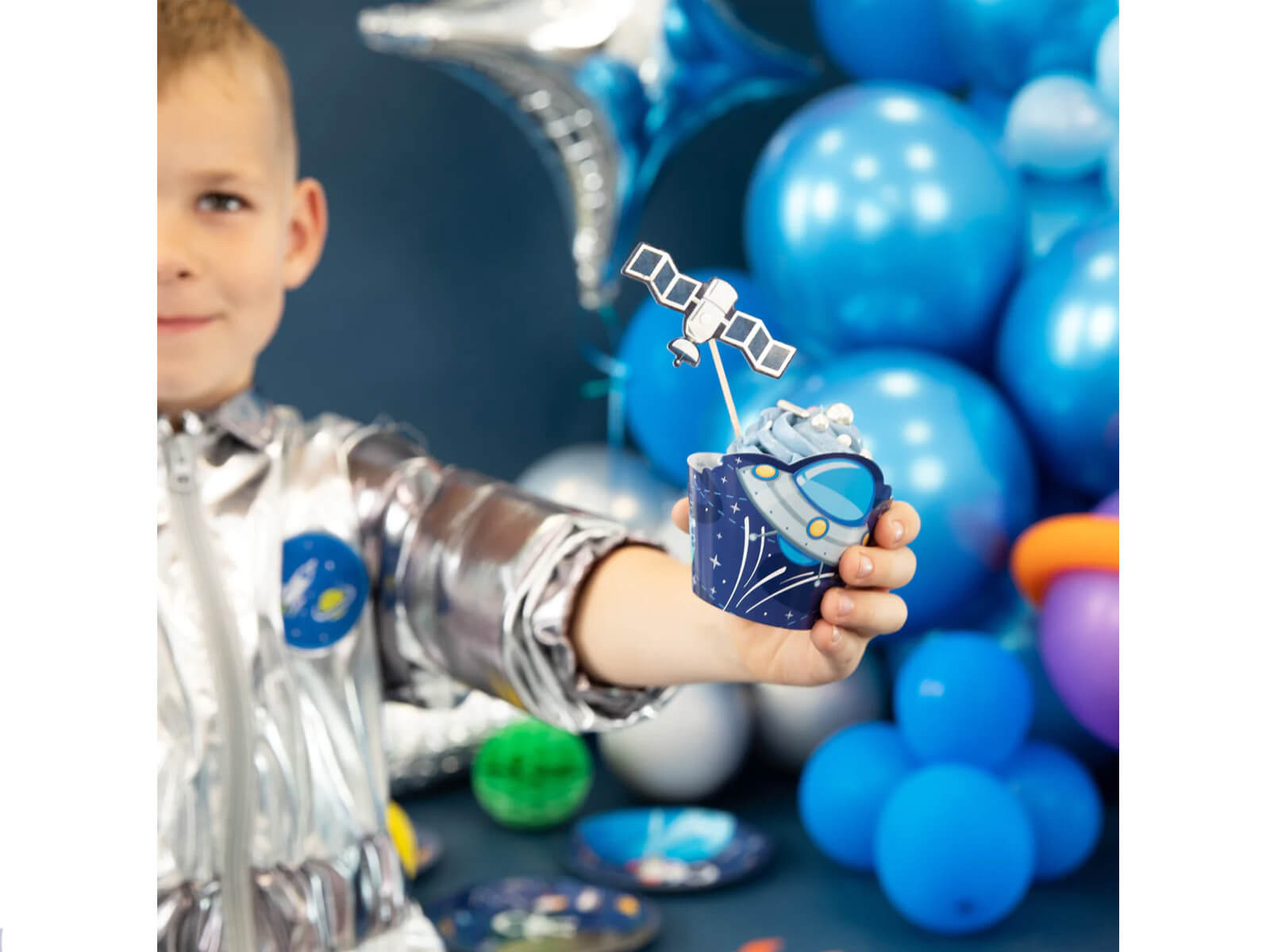 Oferiți produselor dvs. de patiserie o notă de magie astronomică cu culegătorii de cupcakes Cosmos. Acest set conține șapte decorațiuni din hârtie, care va duce orice desert în colțuri necunoscute ale universului. Fiecare decor are o formă unică pentru a reprezenta diferite planete, ceea ce le face ideale pentru petrecerile aniversare spațiale atât pentru fete, cât și pentru băieți.