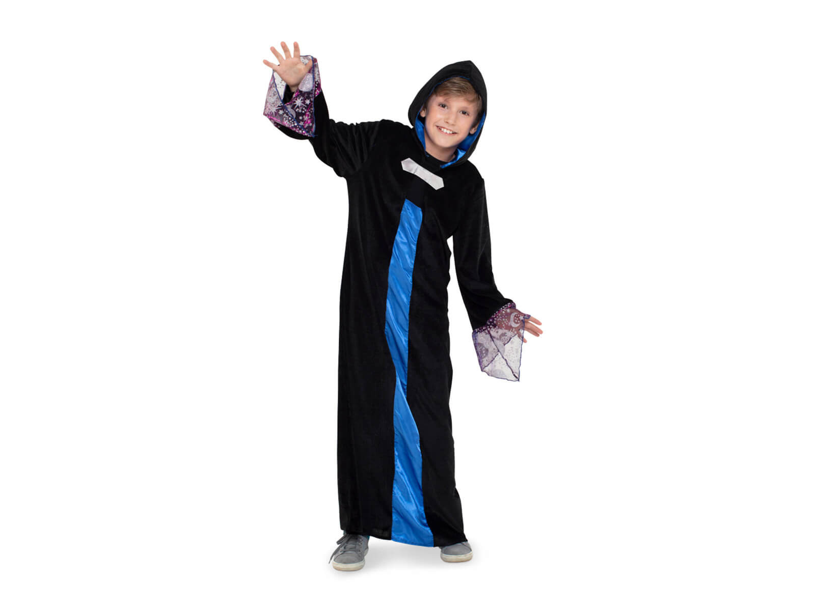 Acest costum este alegerea perfectă pentru Ziua Sfântului Andrei dacă Halloween, când deghizările creative sunt la ordinea zilei. Costumul se potrivește mărimii M (116-134 cm), ideal pentru copiii de vârstă școlară. Încurajați imaginația copilului dvs. și bucurați-vă văzând cum un mic vrăjitor dă viață lumii magice din jurul său!