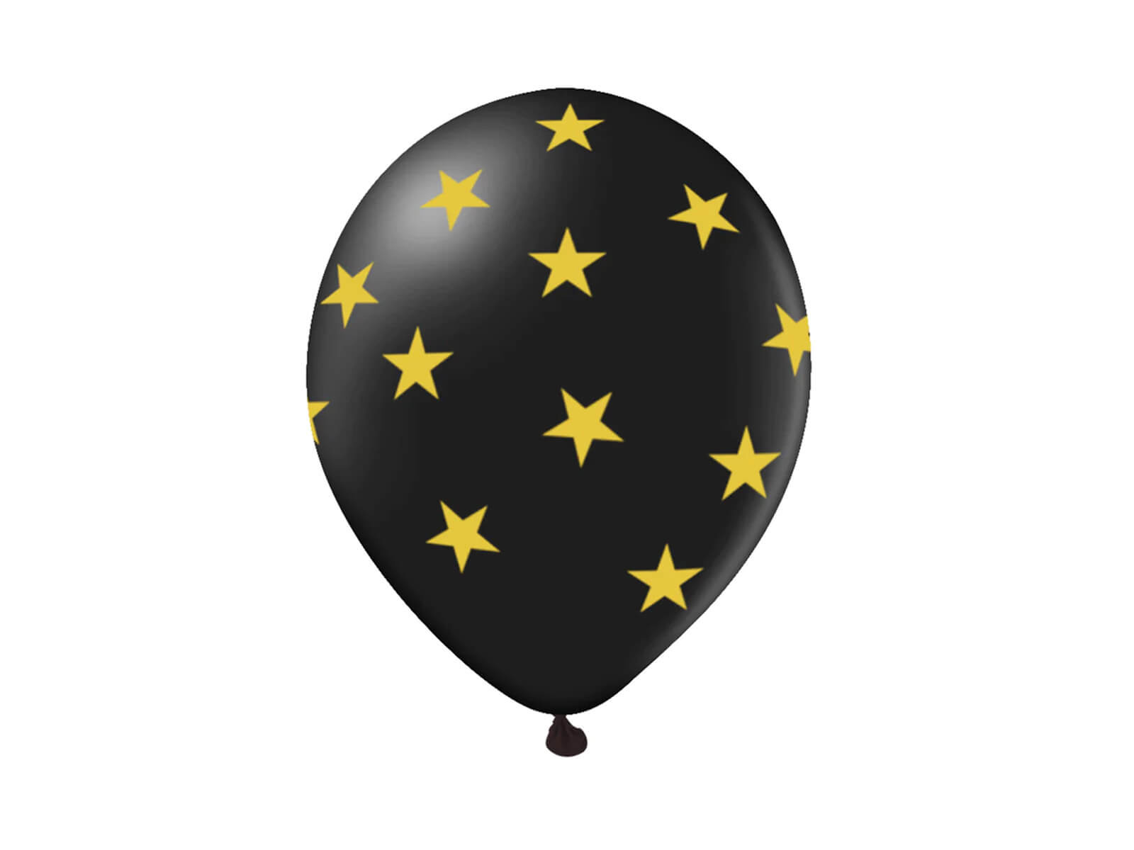 Baloane din latex negru cu stele aurii - 30 cm - 5 buc.