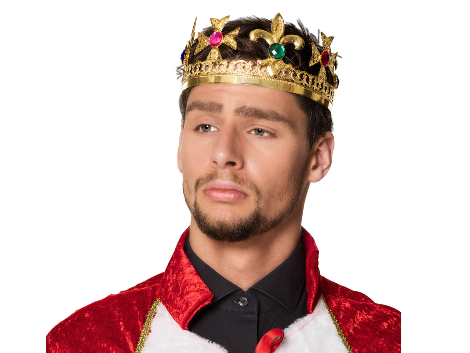 Prezentat de Coroana regelui, care este un atribut esențial al oricărei figuri regale. Fabricat din metal de o culoare aurie impresionantă, acesta este decorat cu bijuterii colorate care atrag atenția și sporesc măreția.