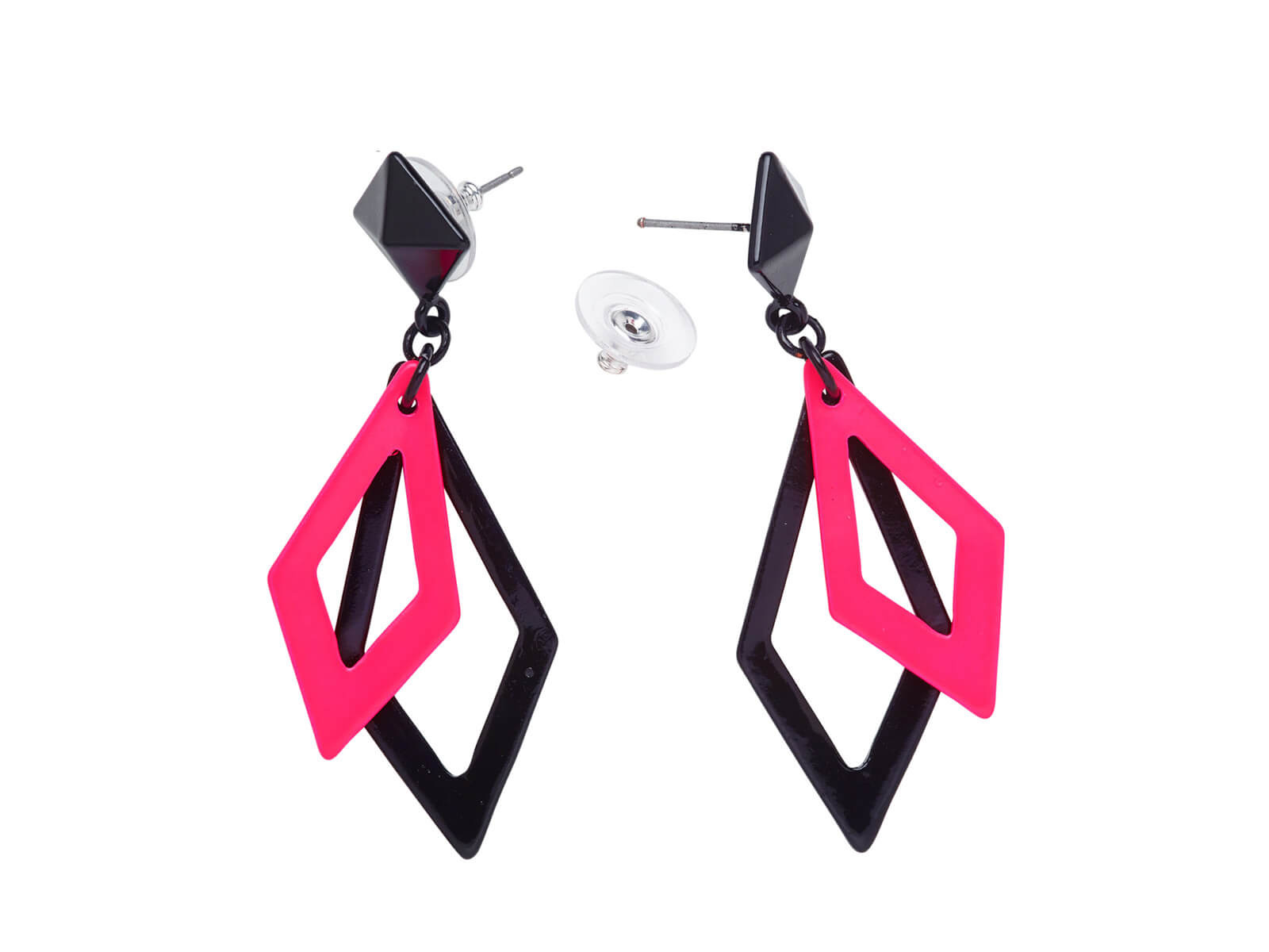 Cercei romboid roz și negru