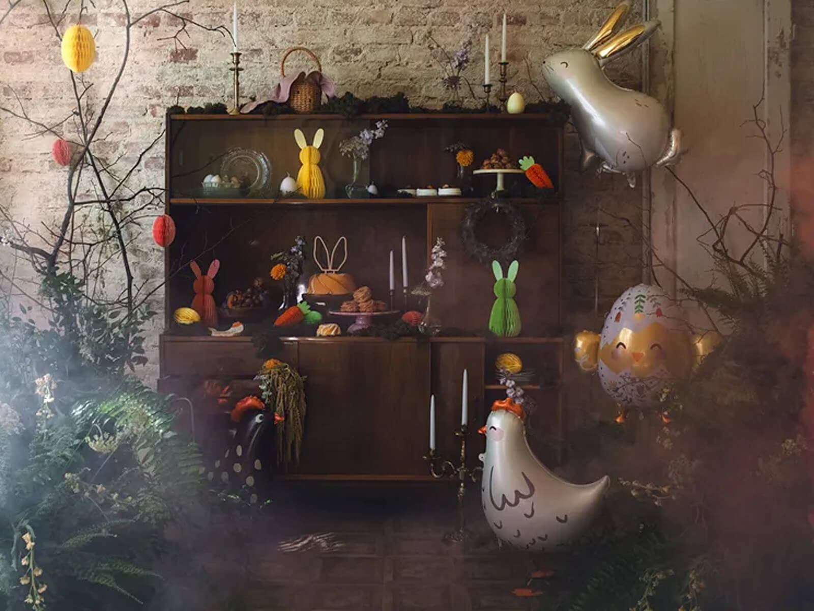 Decorațiune agățată cu rozetă iepuraș verde - 30 cm - 1 buc.