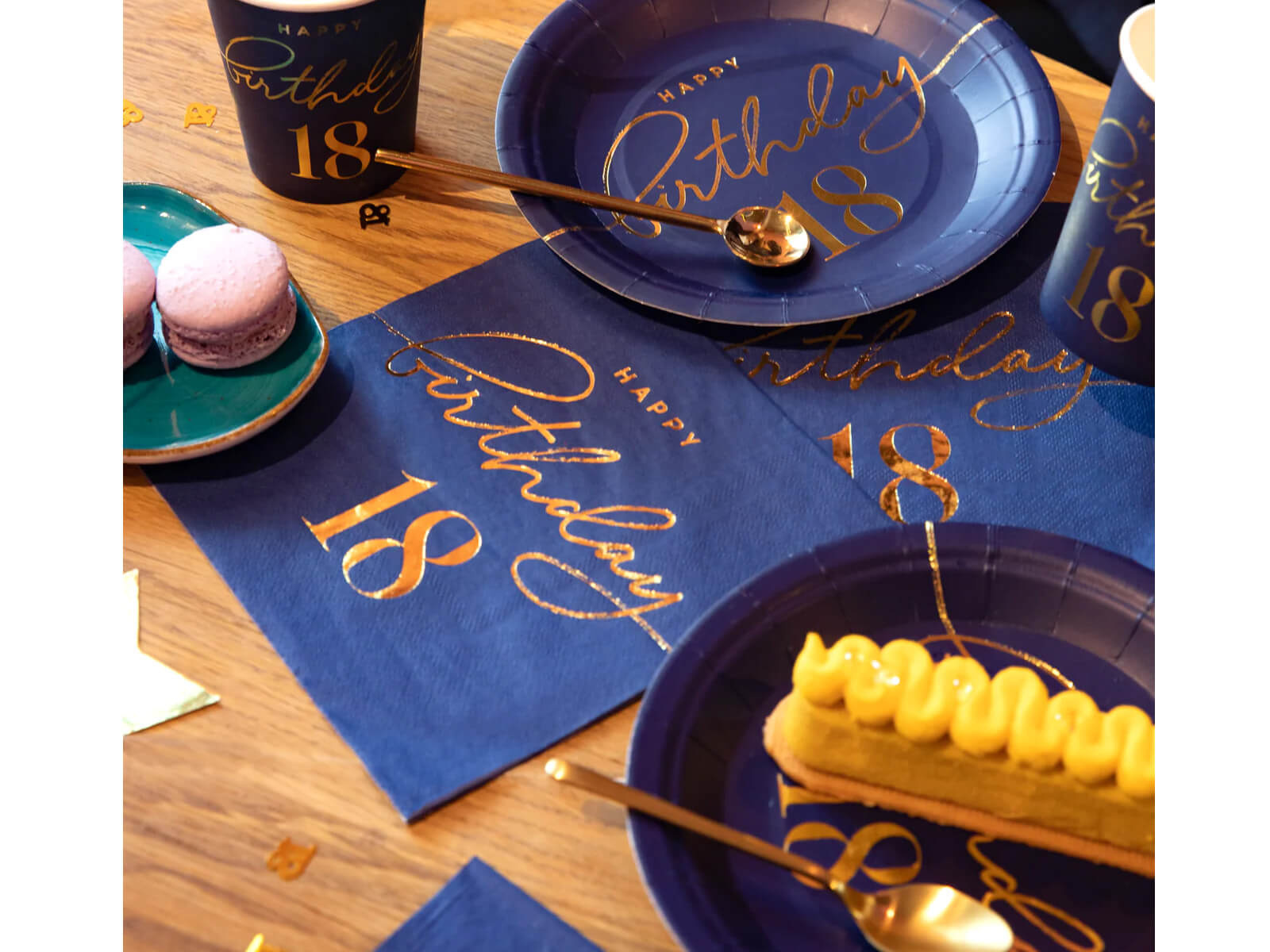 Șervețele pentru a 18-a aniversare albastru marin - 33 cm - 10 buc.