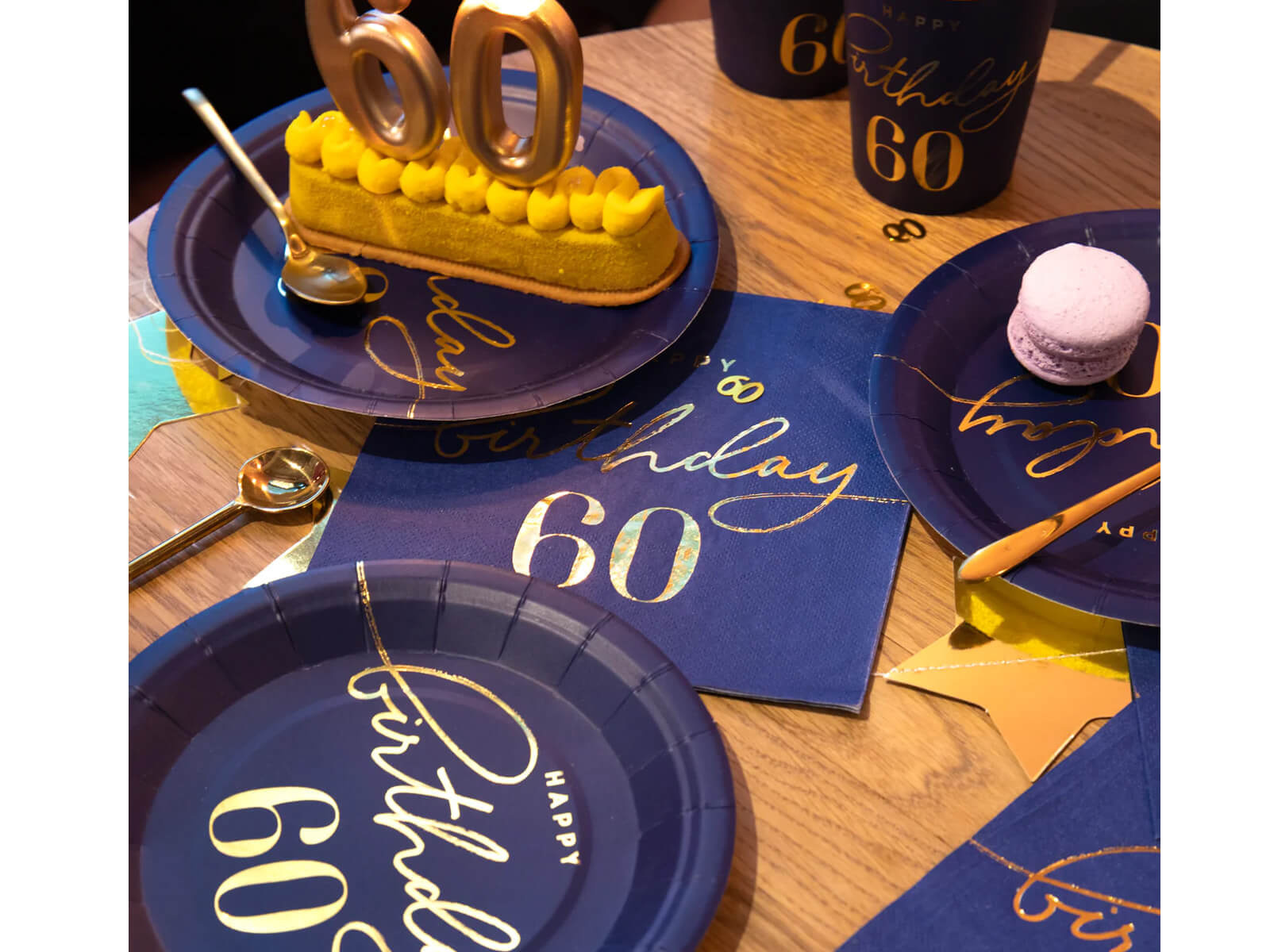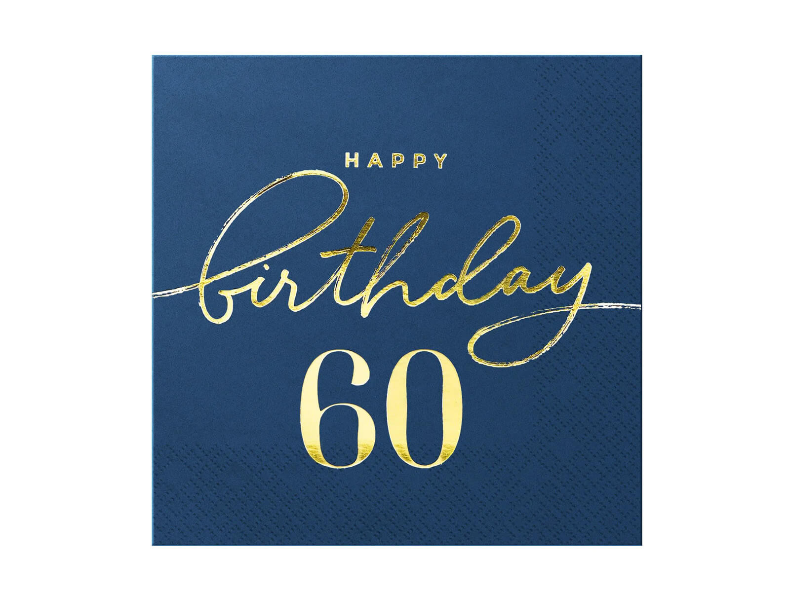 Șervețele pentru a 60-a aniversare albastru marin - 33 cm - 10 buc.