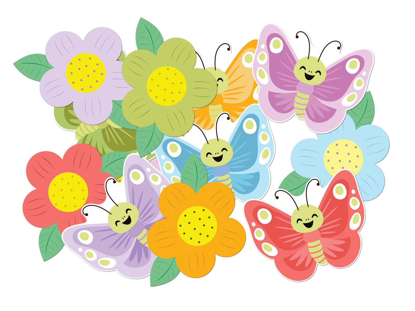 Decorațiuni de primăvară din hârtie Flori și fluturi - 12 buc