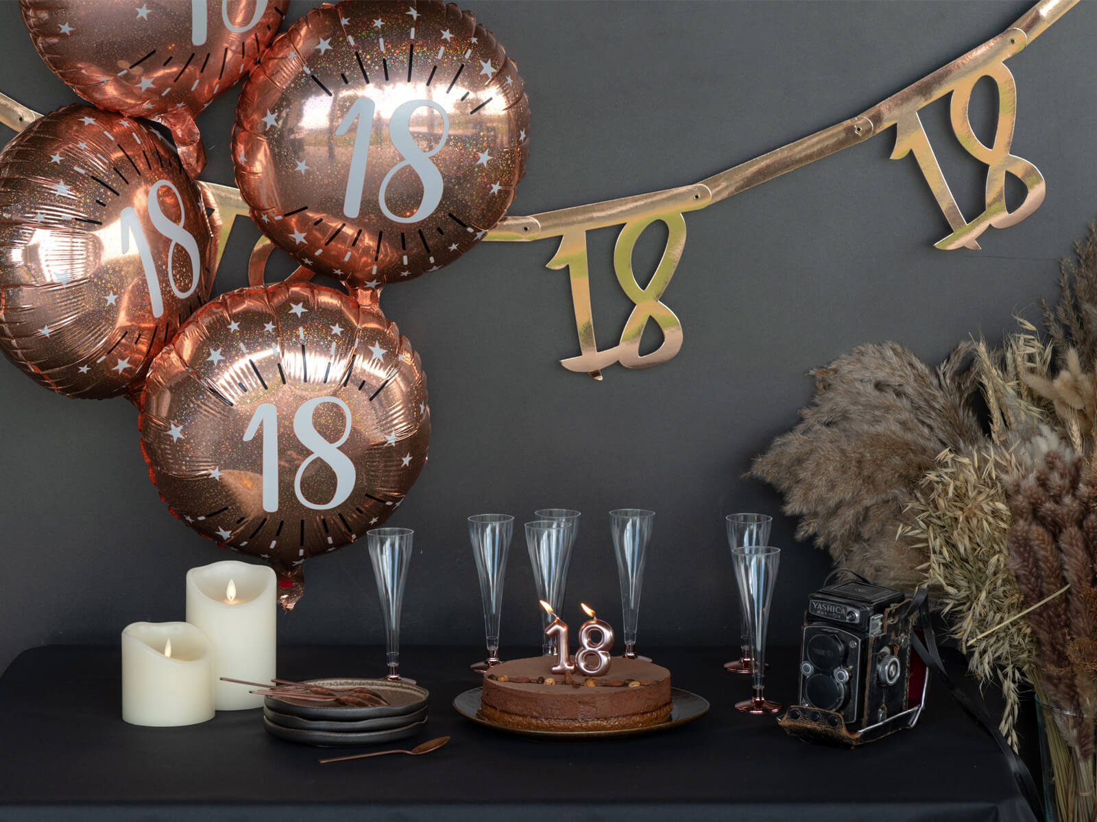Ghirlanda aniversară de 18 ani aur roz - 250 cm - 1 buc.