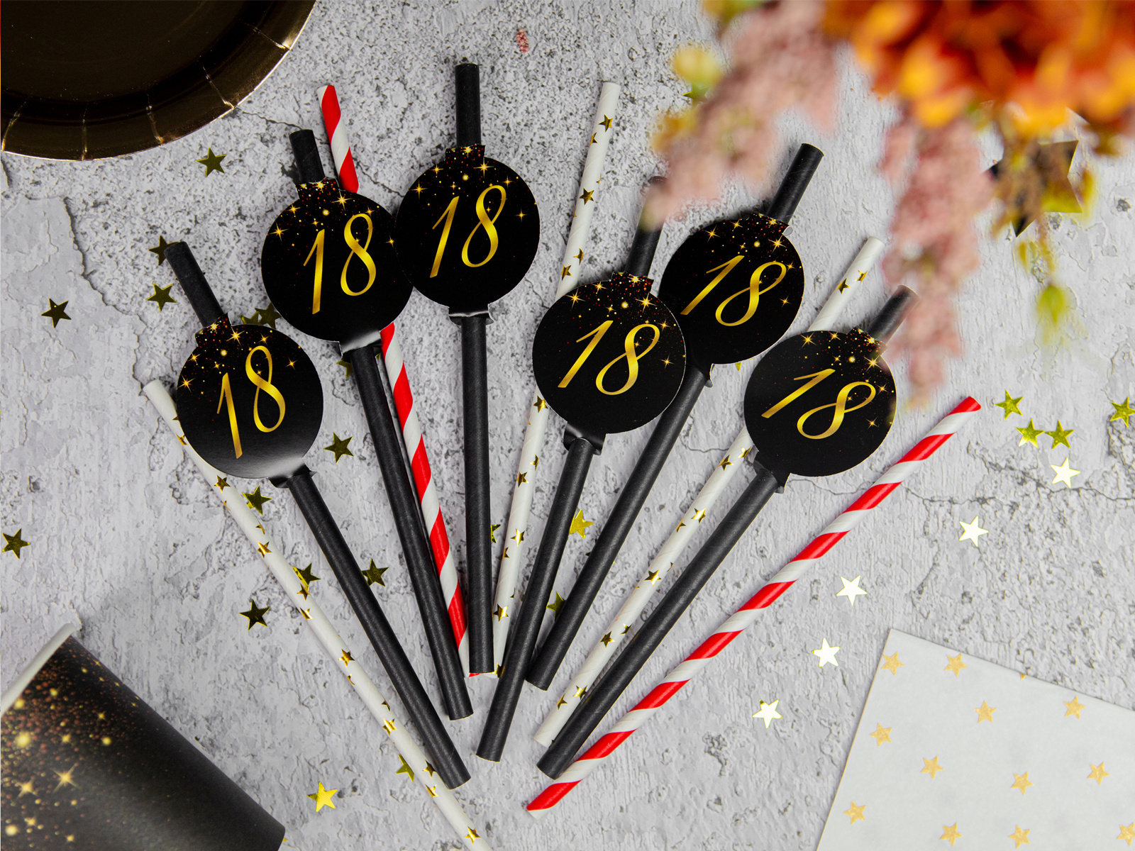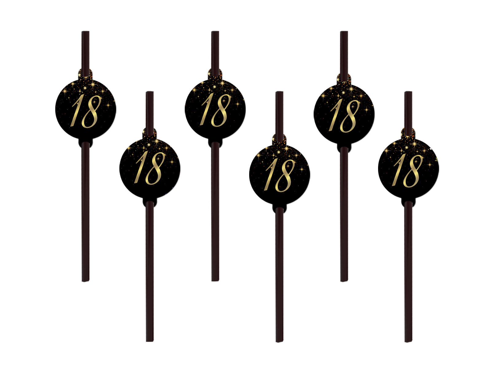 Paie neagră strălucitoare pentru a 18-a aniversare - 6 buc.
