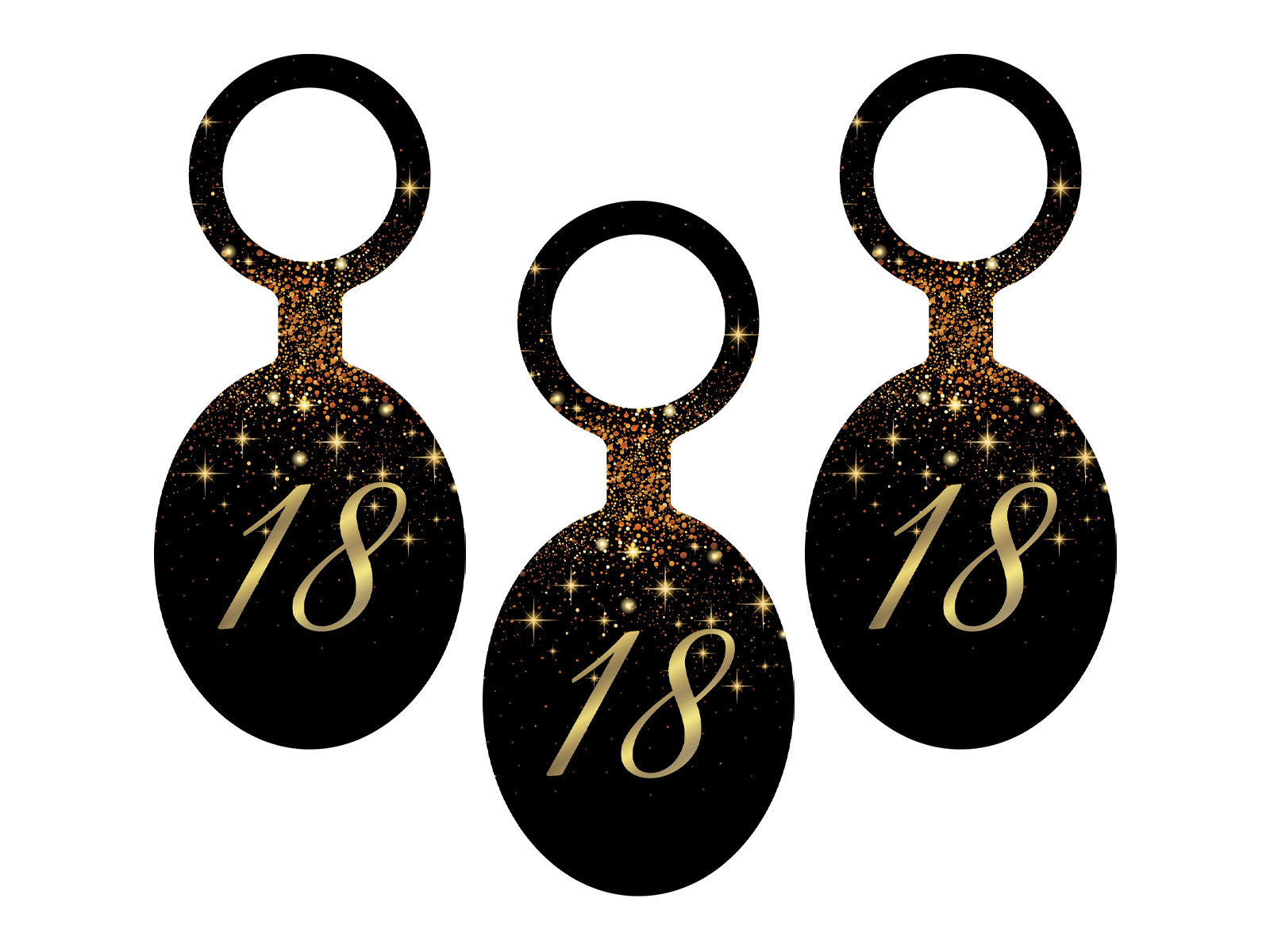 Sărbătorirea celei de-a 18-a aniversări capătă o strălucire specială cu agățătoarele pentru sticle de hârtie din colecția noastră Sparkling. Decorațiunile elegante, realizate cu atenție la detalii, se potrivesc perfect cu atmosfera celor mai importante momente.