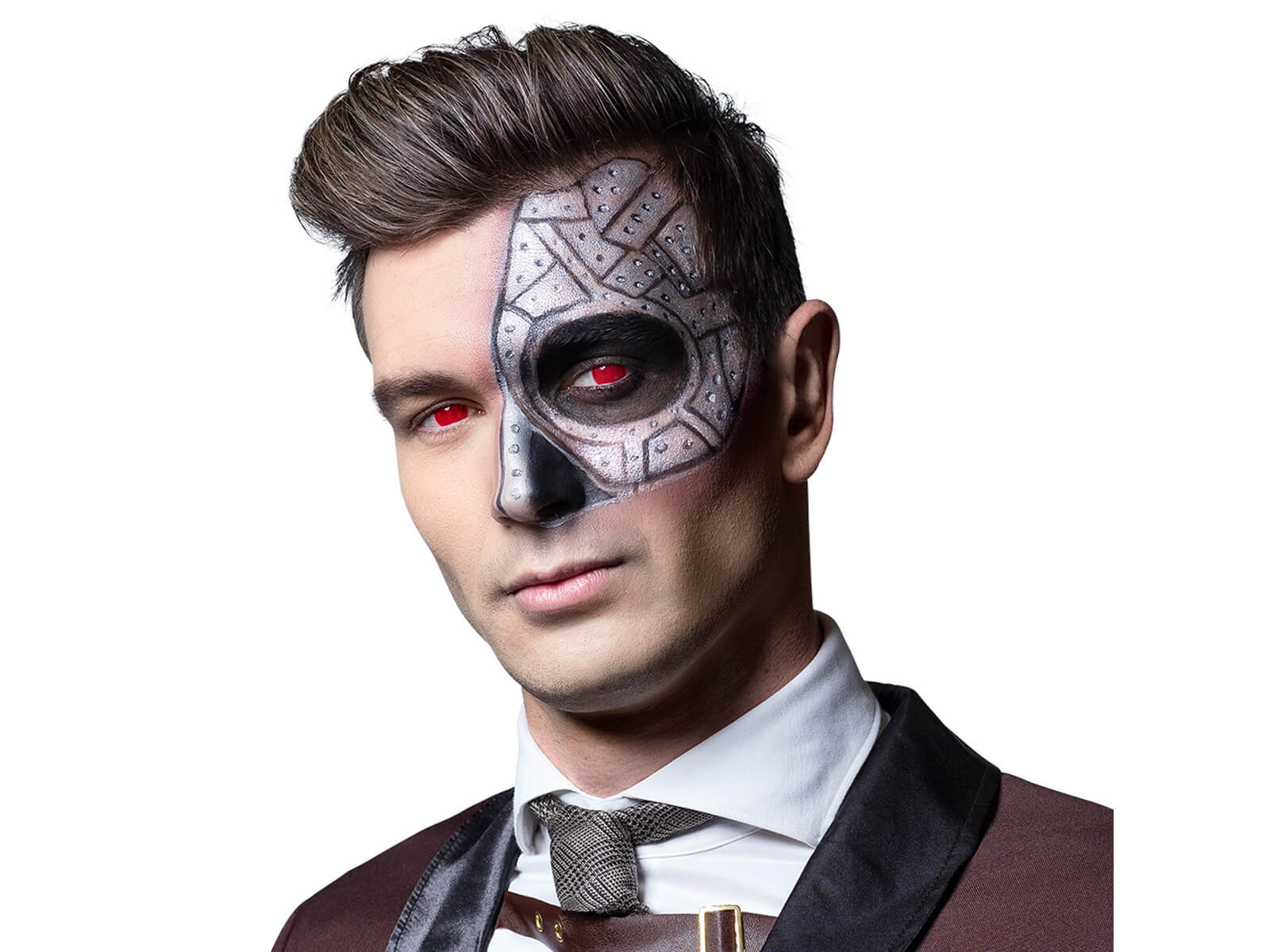 Transformați-vă într-un personaj din viitor cu Lentile de contact "Cyborg"! Perfecte pentru o creație cyborg steampunk, aceste lentile de o săptămână într-o culoare roșie atrăgătoare vor adăuga o notă unică costumului tău. Deveniți vedeta oricărei petreceri tematice sau de Halloween!