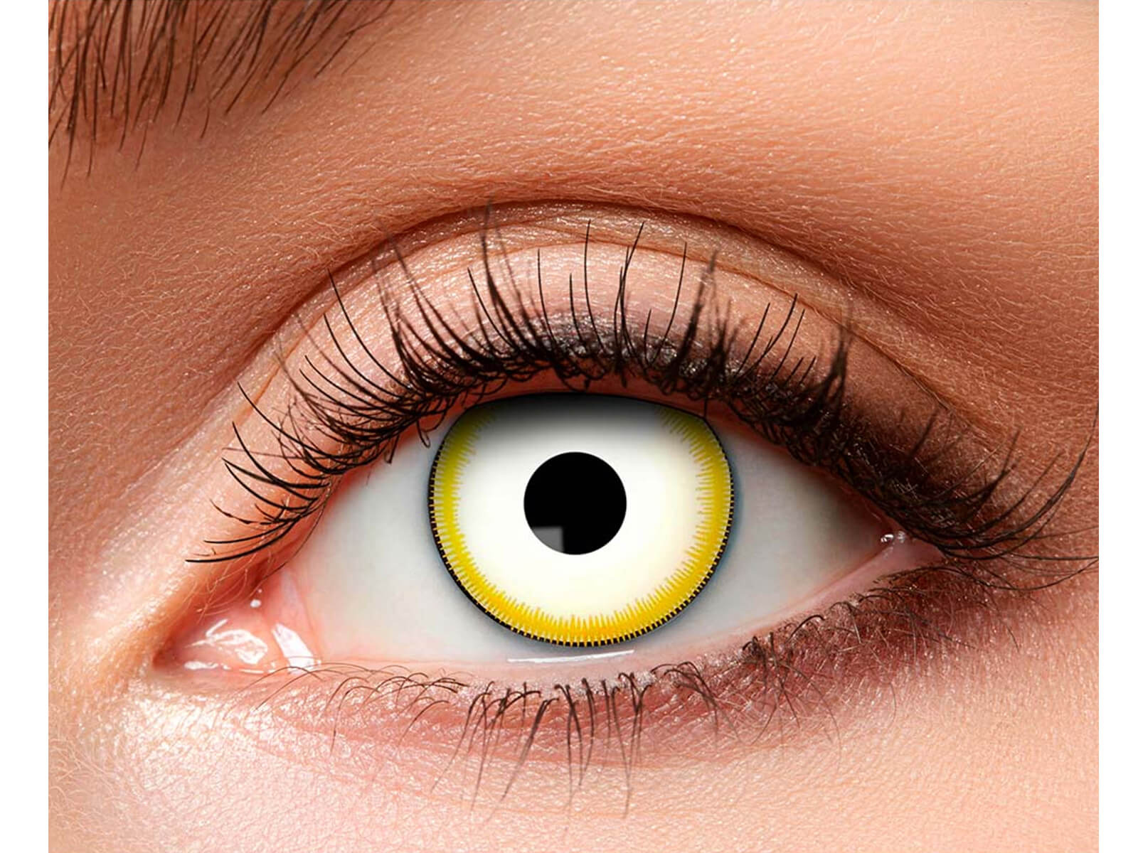Transformați-vă look-ul într-o piesă de machiaj misterioasă cu lentilele noastre "Dark Fairy". Lentilele albe cu o margine galbenă adaugă o notă specială suplimentară, potrivindu-se perfect cu un costum de zână sau altă imagine înfricoșătoare pentru Halloween. Perioada de purtare este de 7 zile, care vă permite să vă surprindeți în mod repetat prietenii la diverse petreceri tematice.