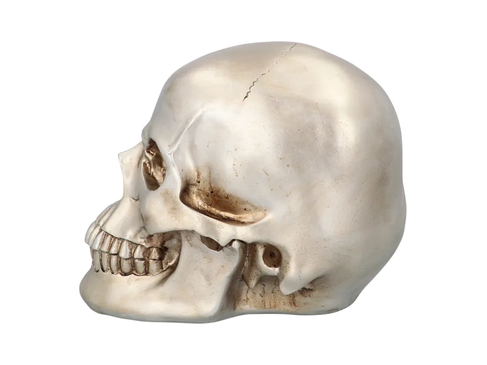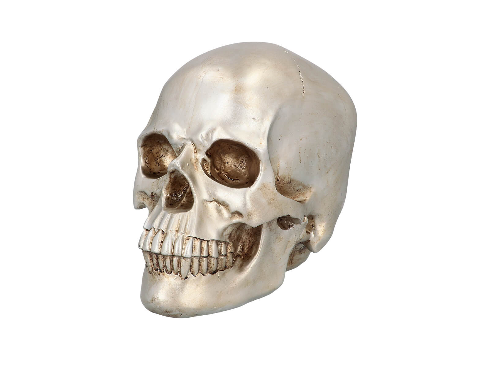 Suprafața sa lucioasă atrage privirile și adaugă o strălucire misterioasă, în timp ce dimensiunile sale realiste (26 x 18 x 23 cm) fac ca acest decor să arate ca un craniu uman real.