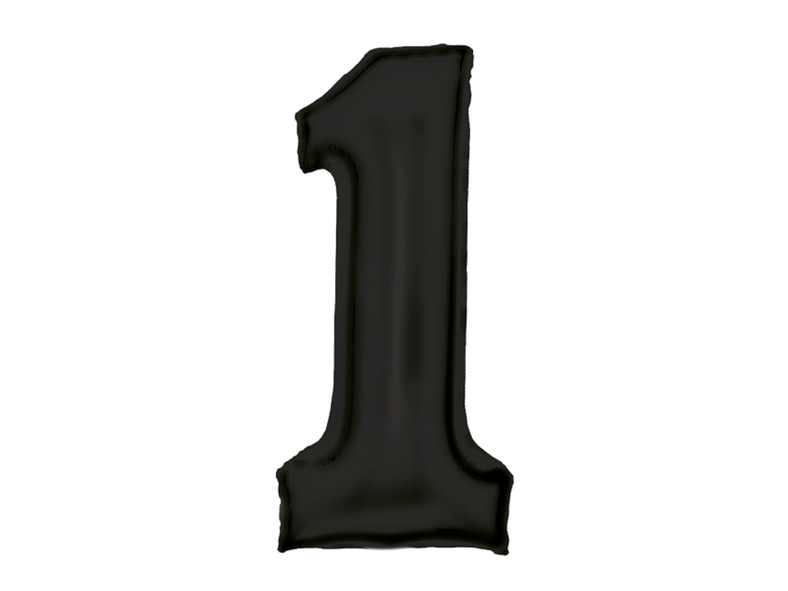Balon din folie satinată numărul 1 negru - 86 cm - 1 buc.