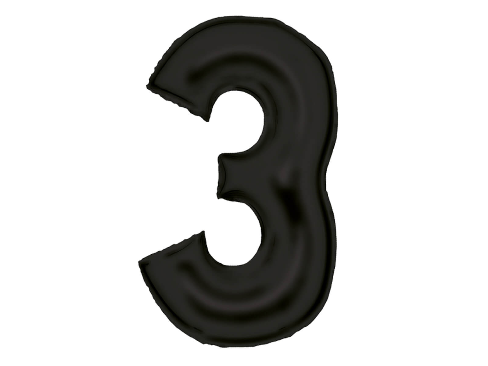 Balon din folie satinată numărul 3 negru - 86 cm - 1 buc.