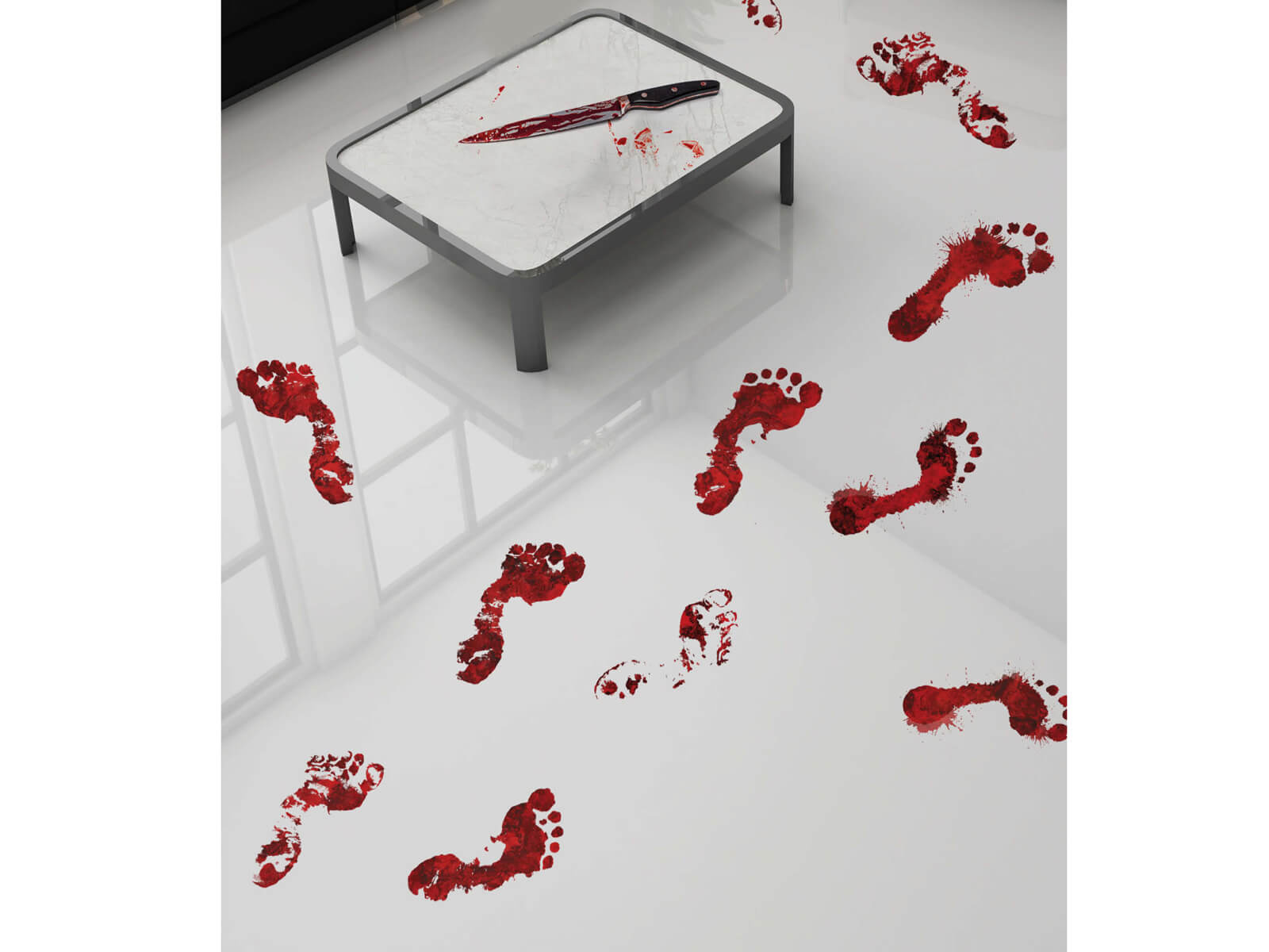 Transformă-ți apartamentul într-o scenă reală dintr-un film de groază cu Autocolante pătate cu sânge de Halloween. Este alegerea perfectă pentru a crea o atmosferă crudă și misterioasă în timpul celei mai înfricoșătoare nopți din an. Decorul constă din două foi de urme de pași însângerate, care sunt excelente pentru podele, precum și pentru decorarea pereților sau a ferestrelor.