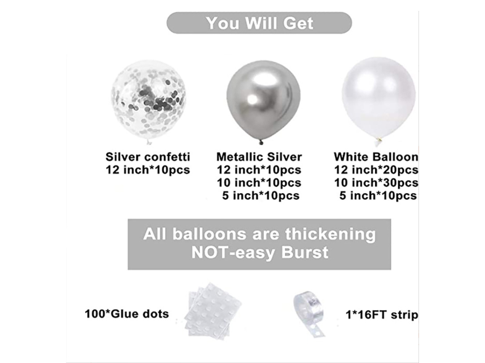 - argintiu metalic 30 cm (10 buc).); 25 cm (10 buc.); 13 cm (10 buc.),