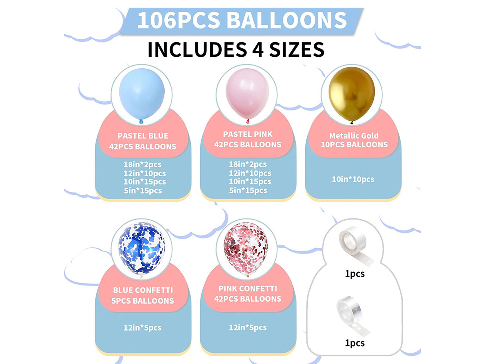 Set de baloane pentru ghirlandă în culori pastelate – 106 bucăți.