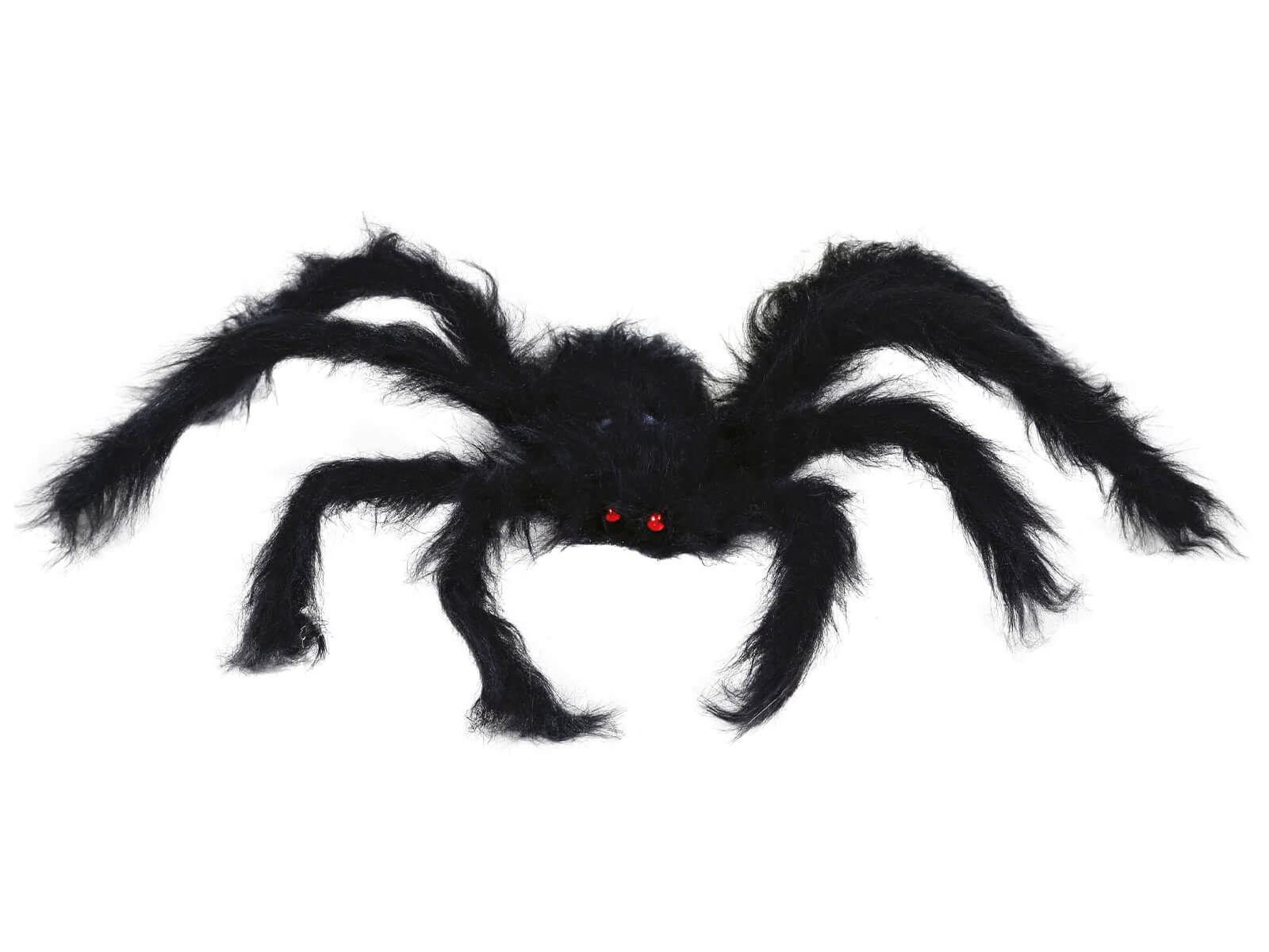 Imaginează-ți uriașii lui ochi roșii, care să atragă atenția și să provoace senzații tari. Acest model negru și păros măsoară impresionant 50 cm, devenind centrul atenției la evenimentul tău.